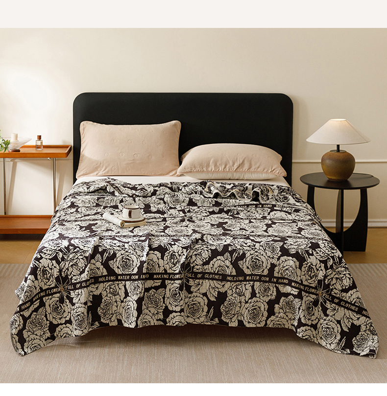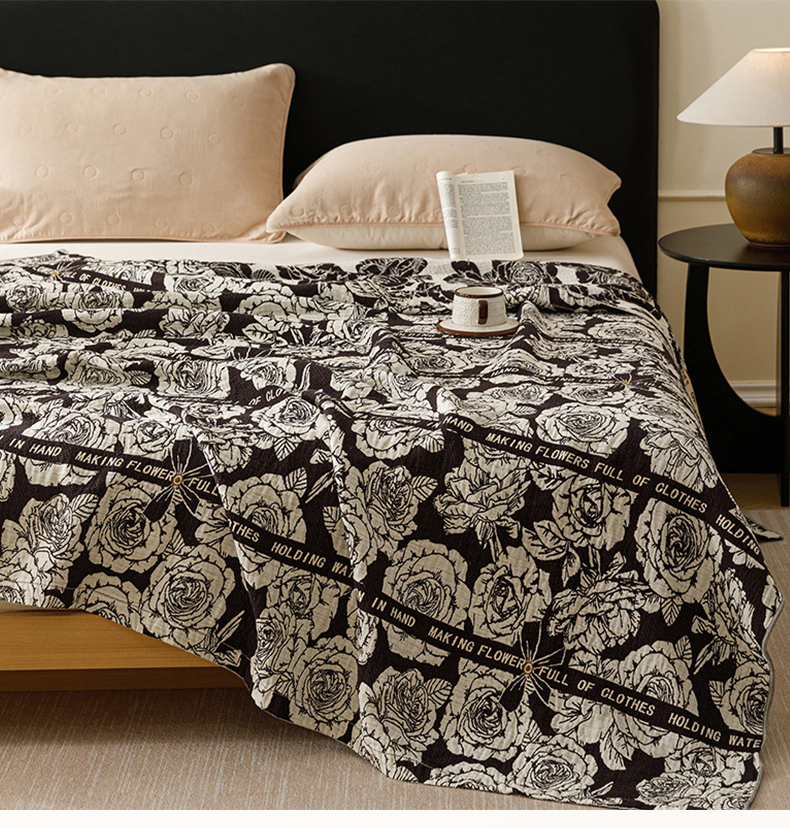 悦然毛巾被 2026新款美拉德色织提花全棉纯棉纱布毛巾被夏被夏凉被空调被 夜宴玫瑰