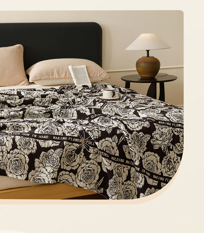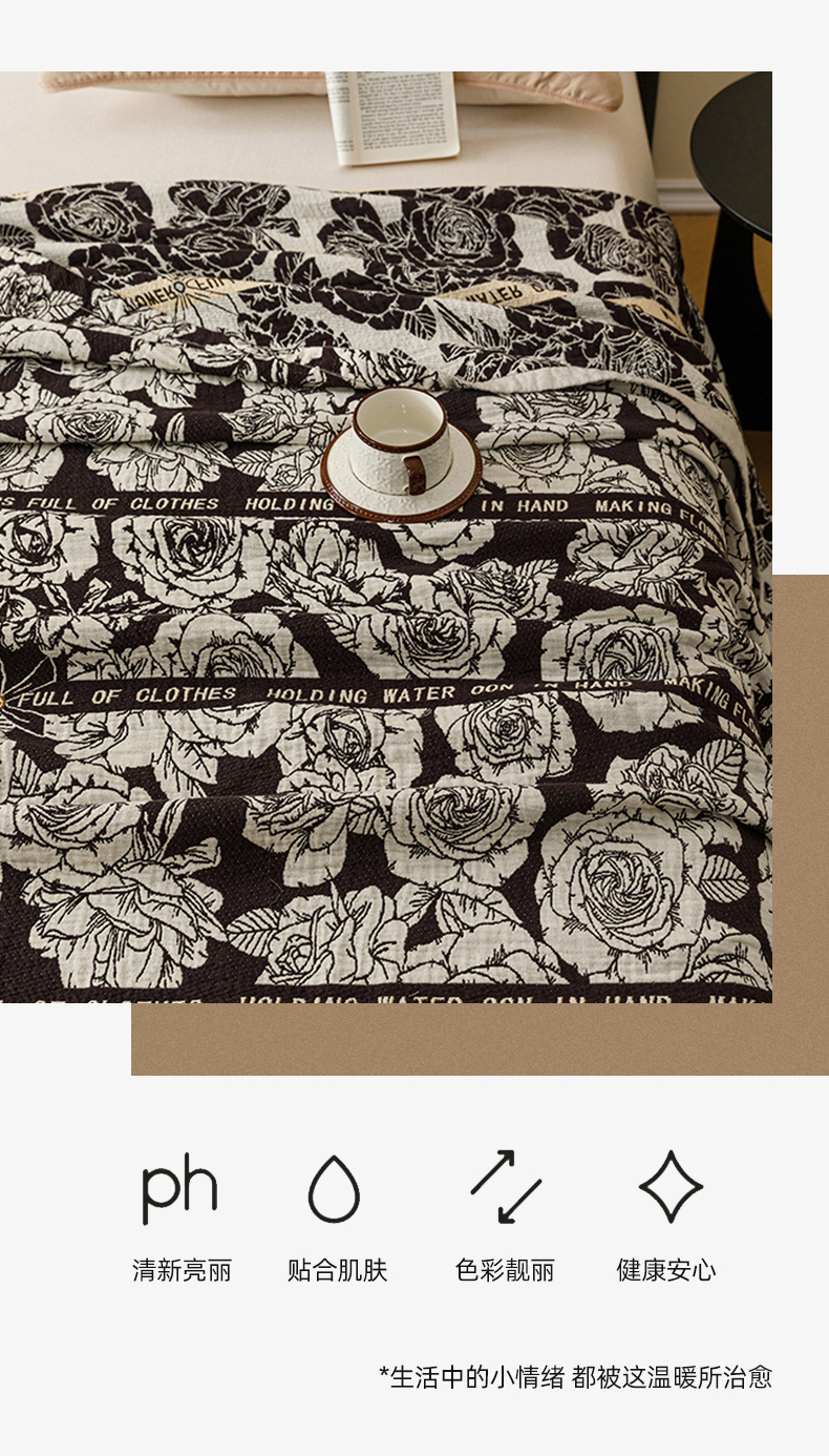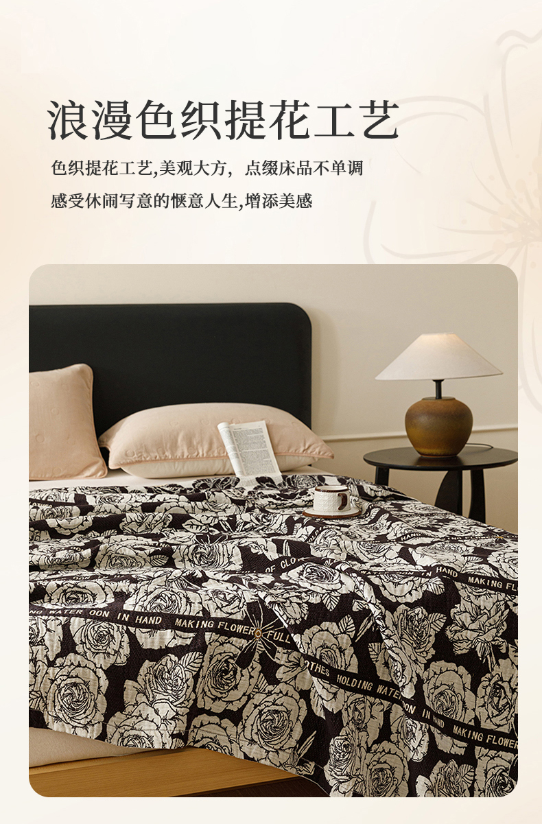 商品名称:悦然毛巾被 2026新款美拉德色织提花全棉纯棉纱布毛巾被夏被夏凉被空调被 夜宴玫瑰