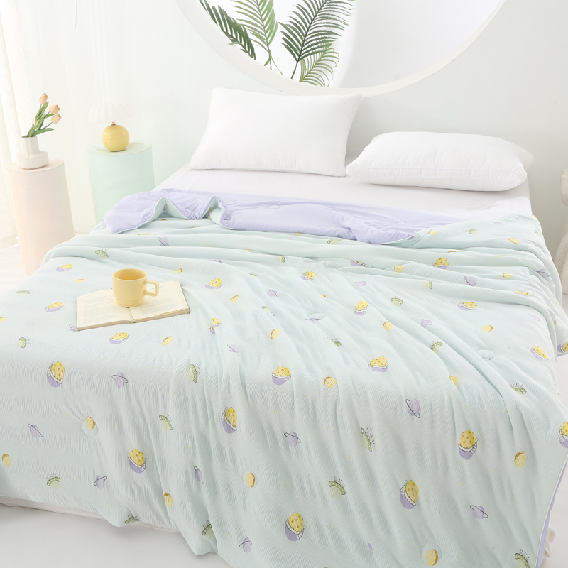 (总)亚龙工厂店 2026春夏新款网销跨境直播爆款法式小香风皱皱纱冷感被夏被,菠萝狗,町香绿,伙伴,情叶绿,微意,小飞花,星球紫,包装一,包装二