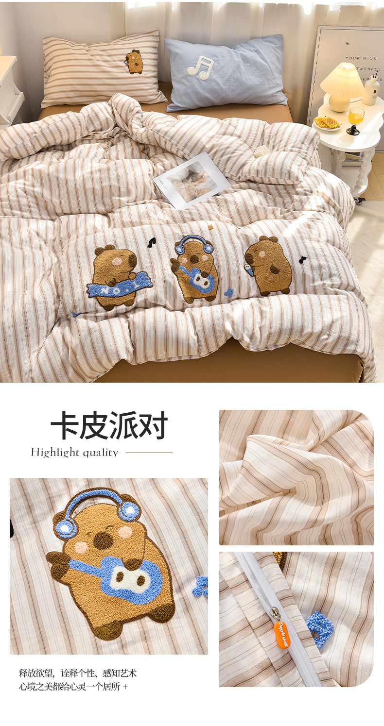 (总)炫拼家纺 2026新款卡通毛巾绣A类全棉40支水洗棉贴布绣平绣纯棉四件套-毛球系列(专票6-7%),毛球-旺旺狗,毛球-卡皮巴拉咖,毛球-小熊黑,毛球-平安喜乐,毛球-快乐小马,毛球-俩小无猜