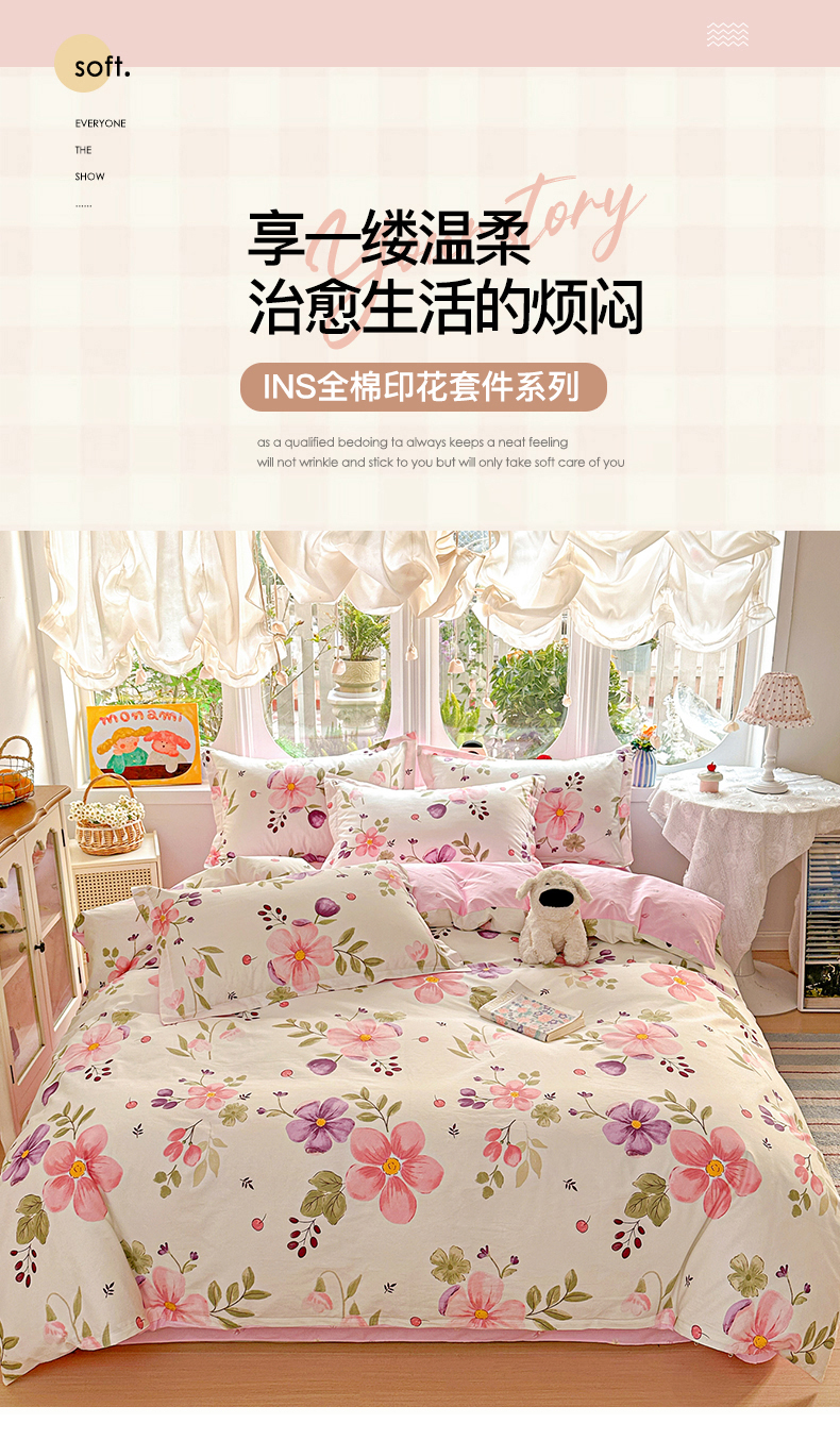 当前位置: 91家纺网 > 商品网购 > 床品套件 > 四件套 > 全棉普通四件套 > 恩泽家纺 2026新款13372ins全棉印花四件套单品系列-四件套 淡香春意