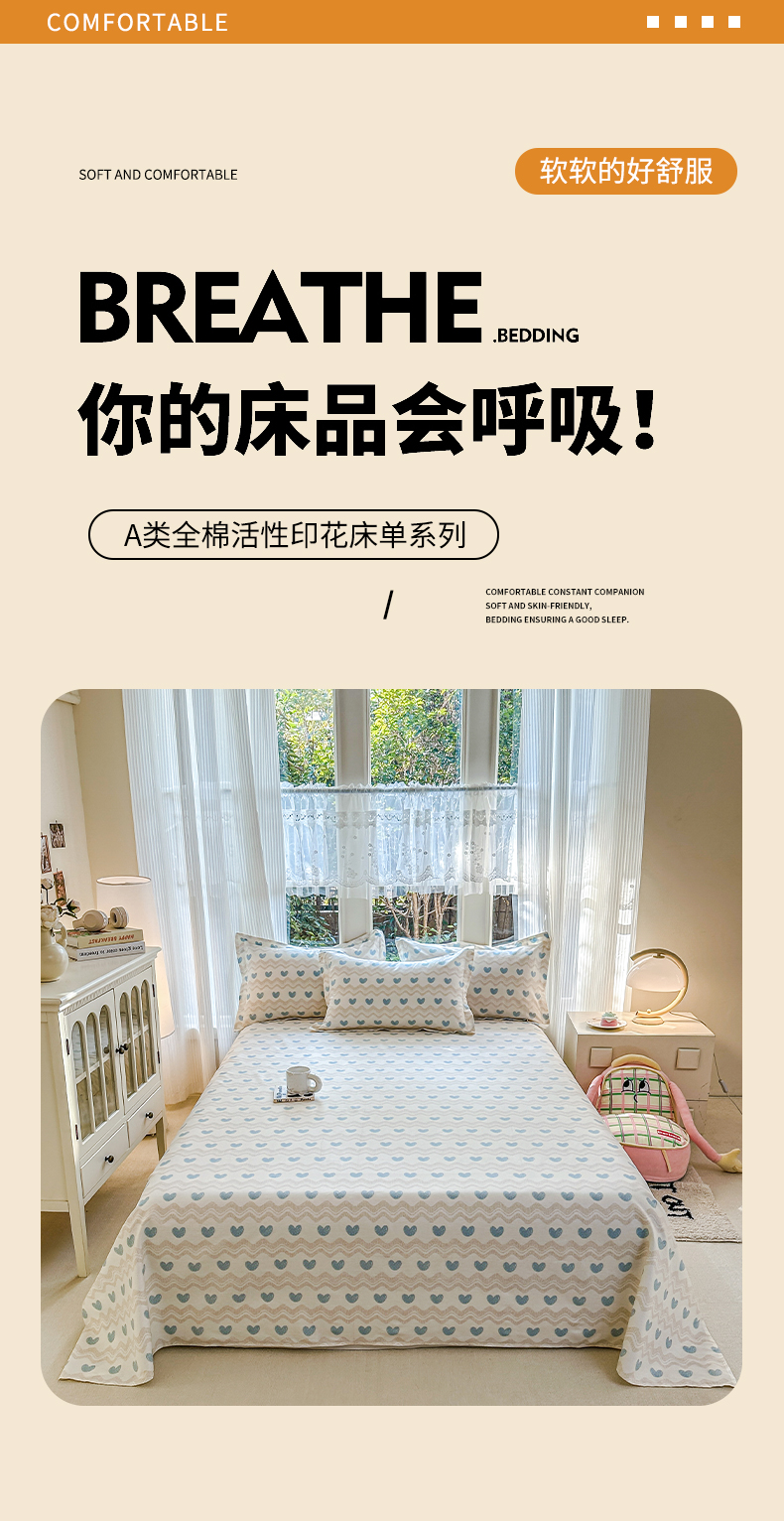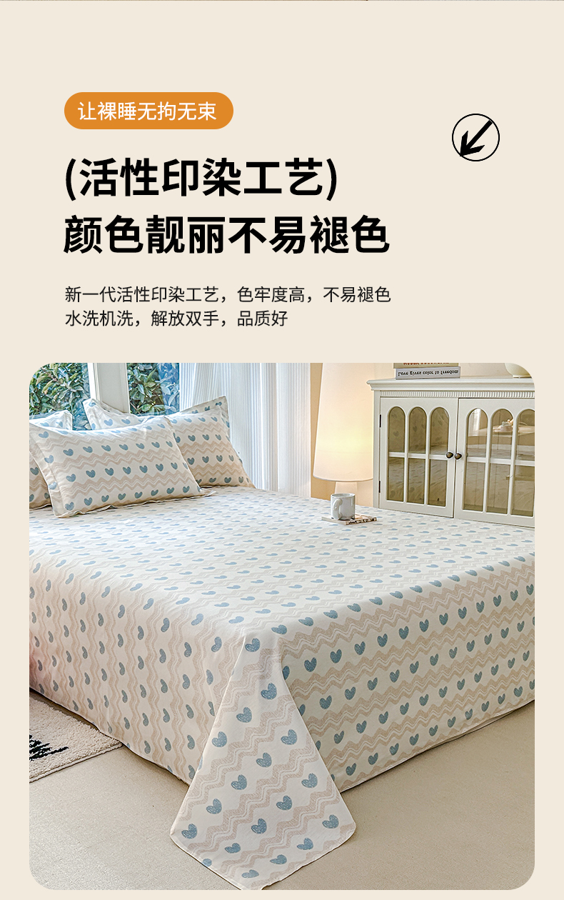 帛织澜家纺 2026新款A类新疆全棉纯棉12868单品印花床单系列(预留缩水,提供质检报告) 心动旋律