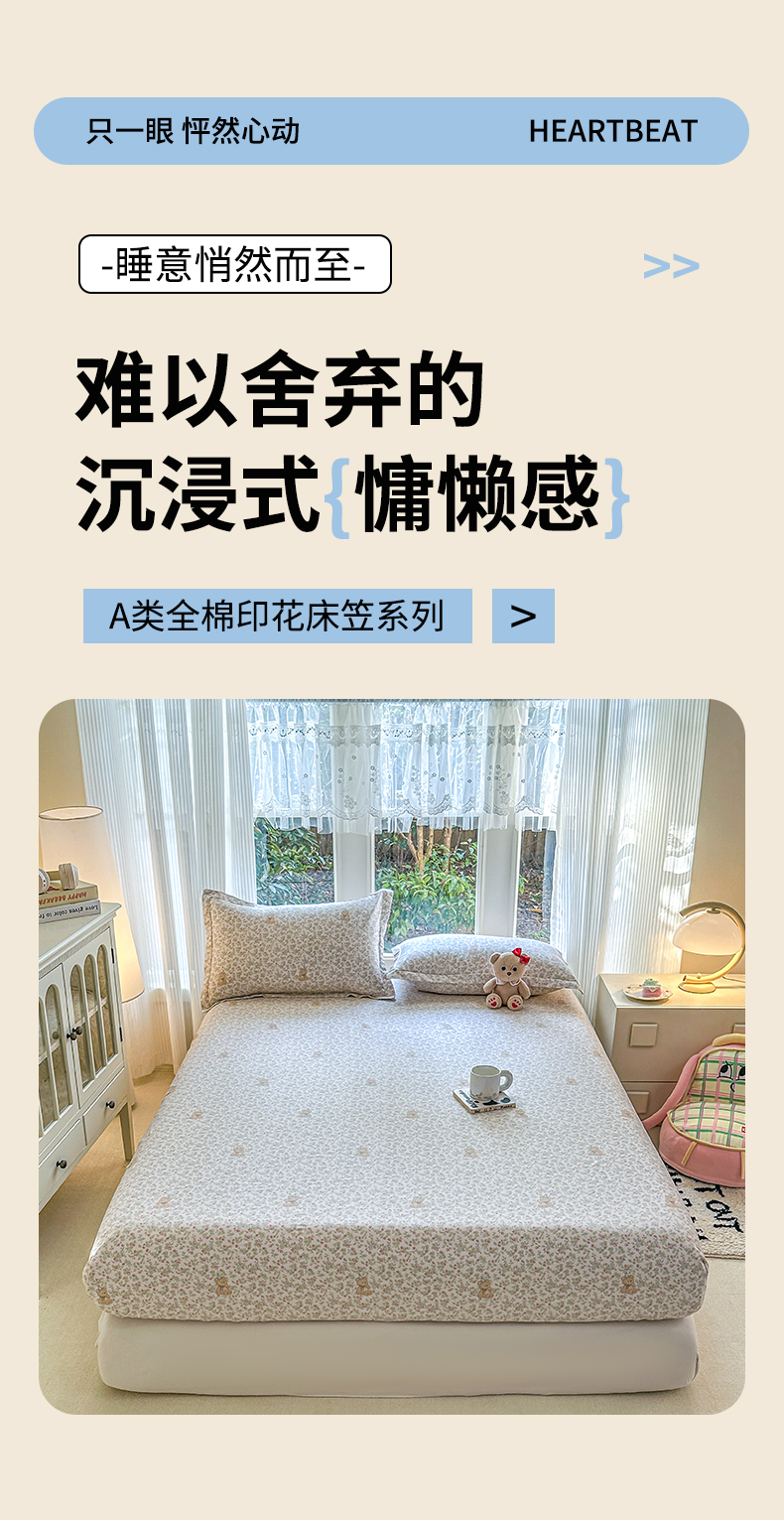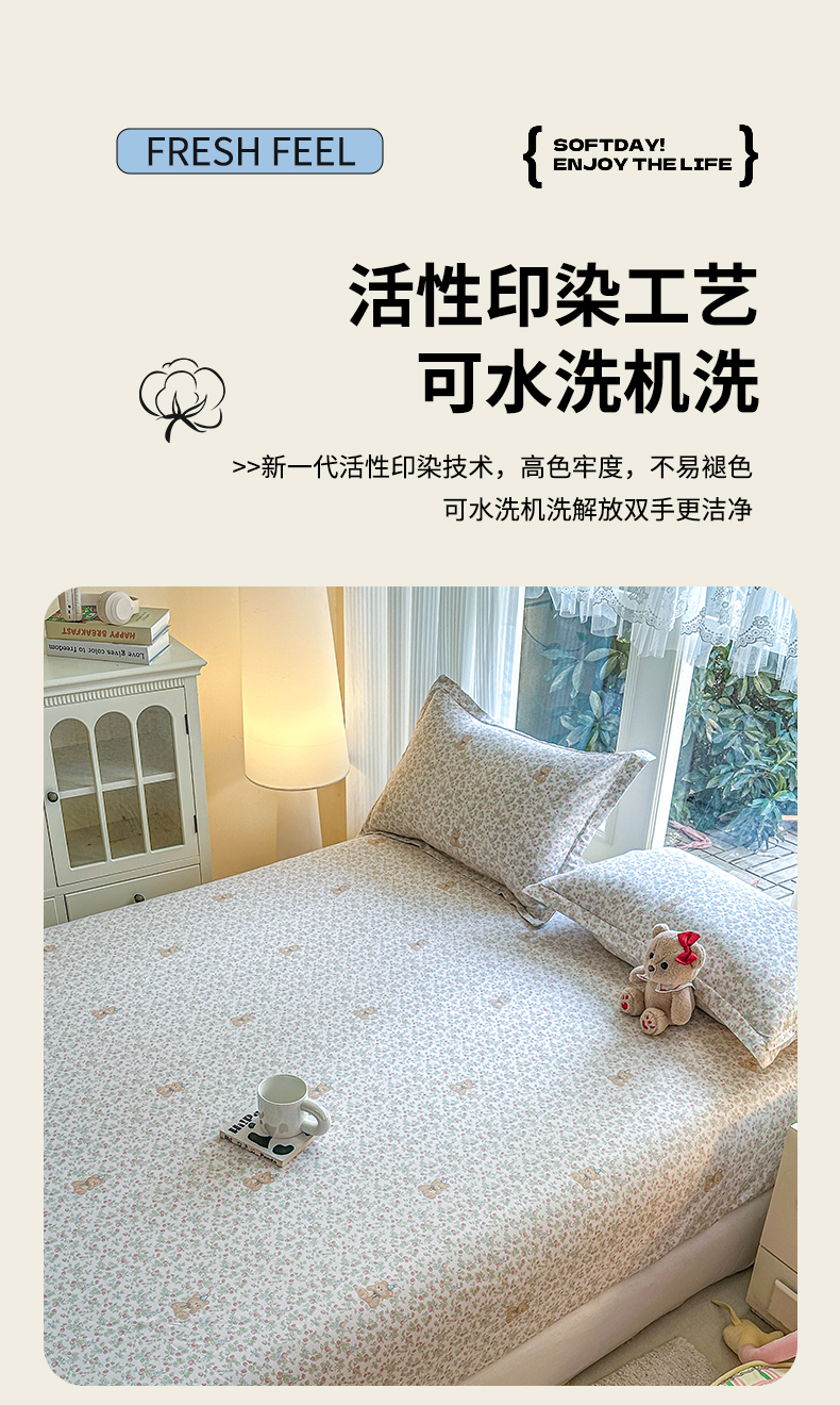 帛织澜家纺 2026新款A类新疆全棉纯棉12868单品印花床笠系列(预留缩水,提供质检报告) 花花熊宝