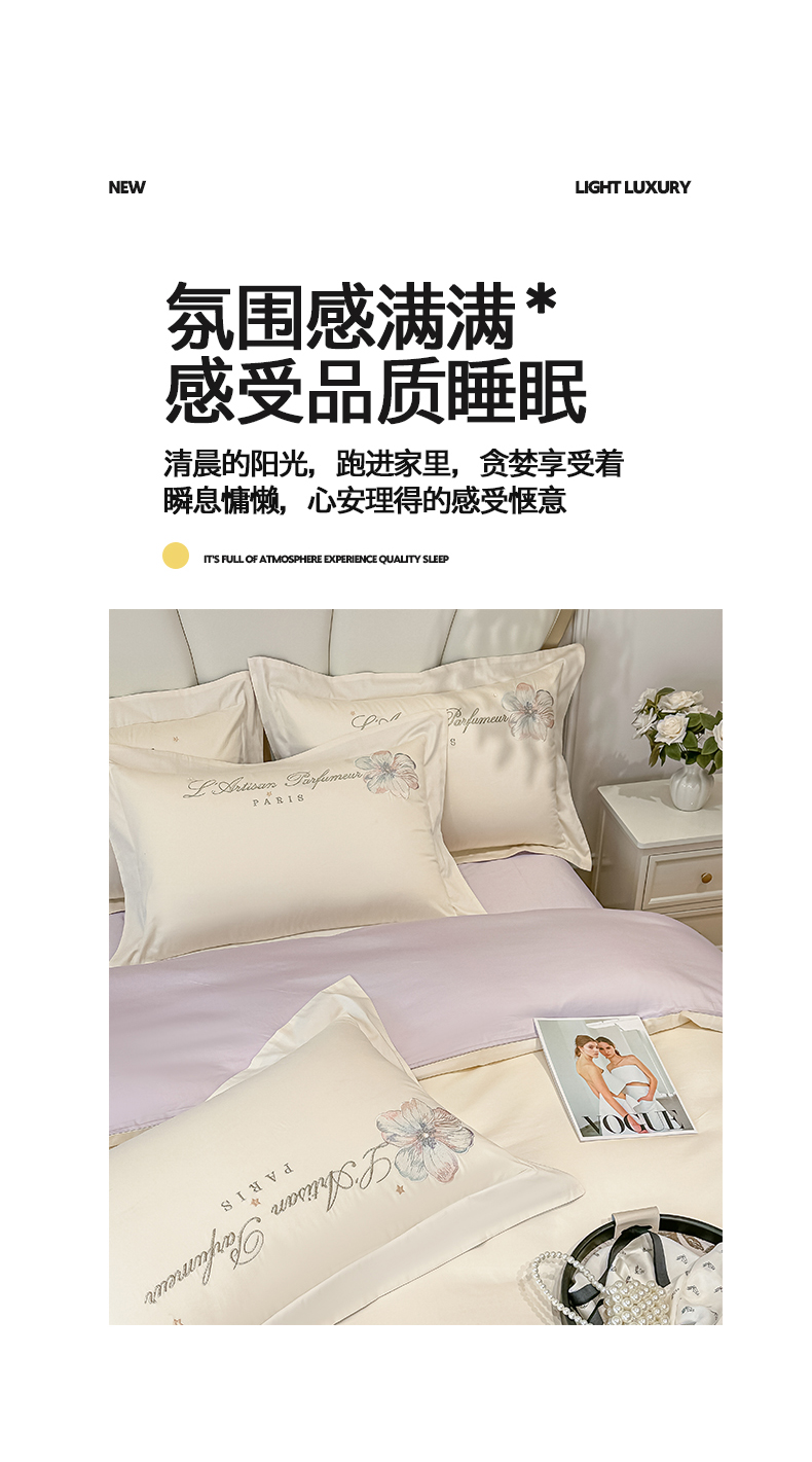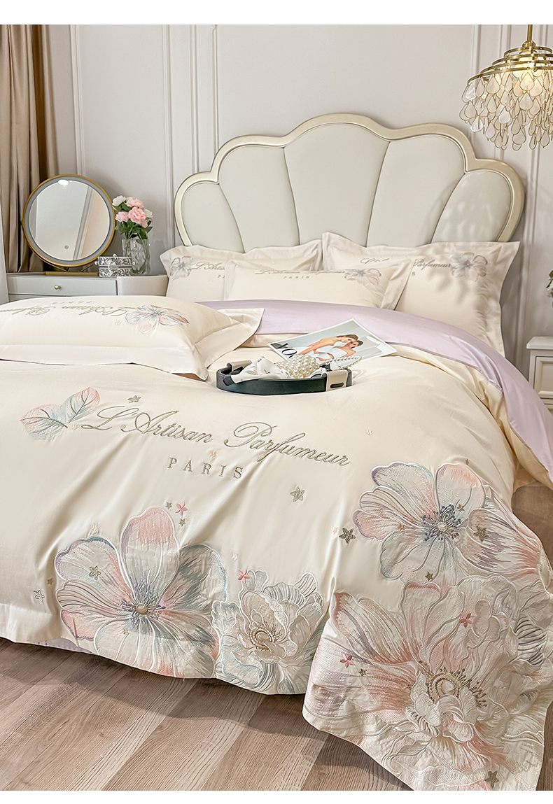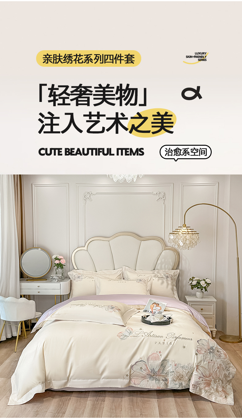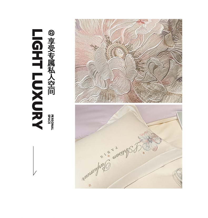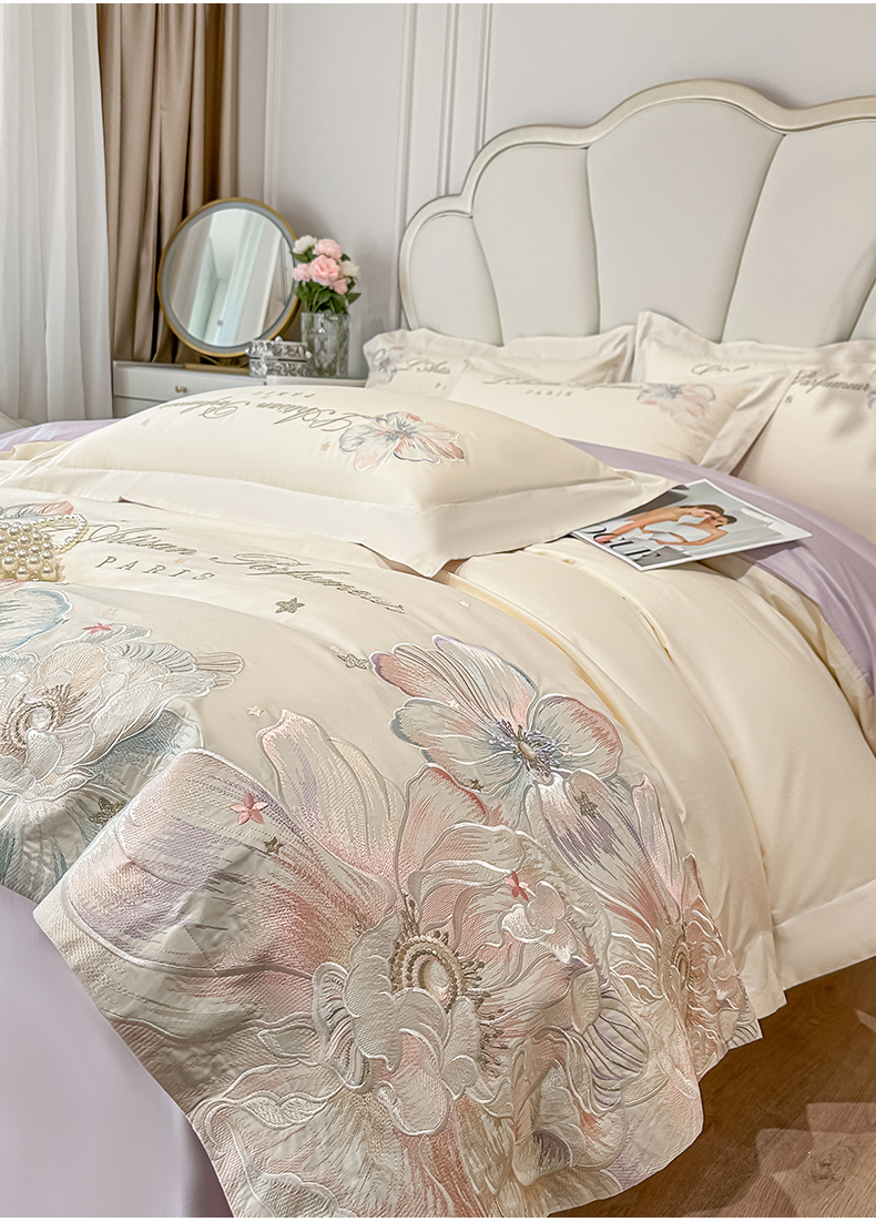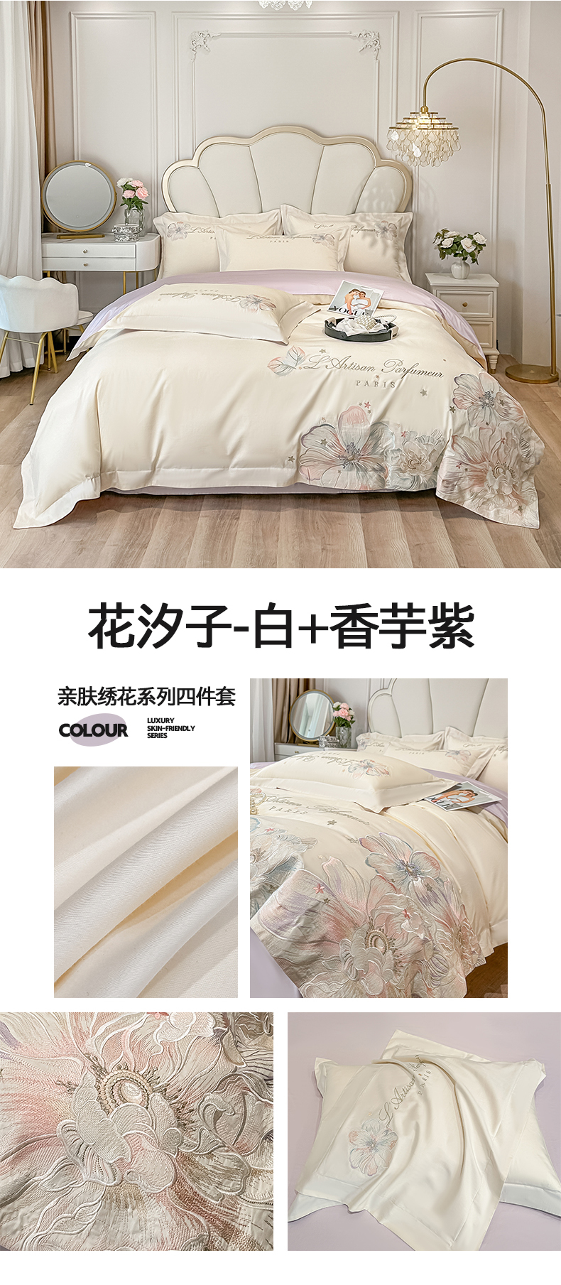 当前位置: 91家纺网 > 商品网购 > 床品套件 > 四件套 > 其它四件套 > 置顶家纺 2026新款花汐子亲肤刺绣小清新四件套 花汐子-白+香芋紫