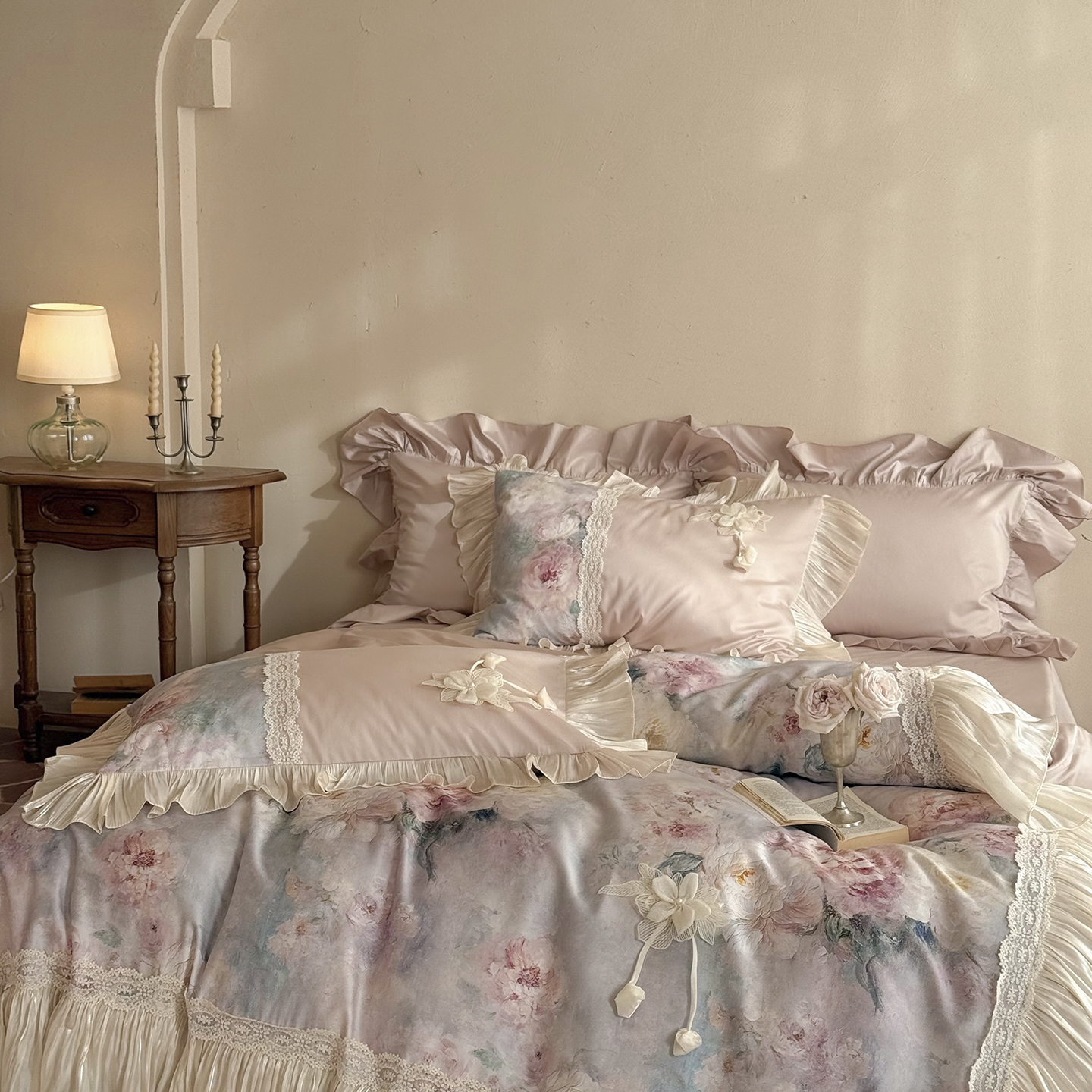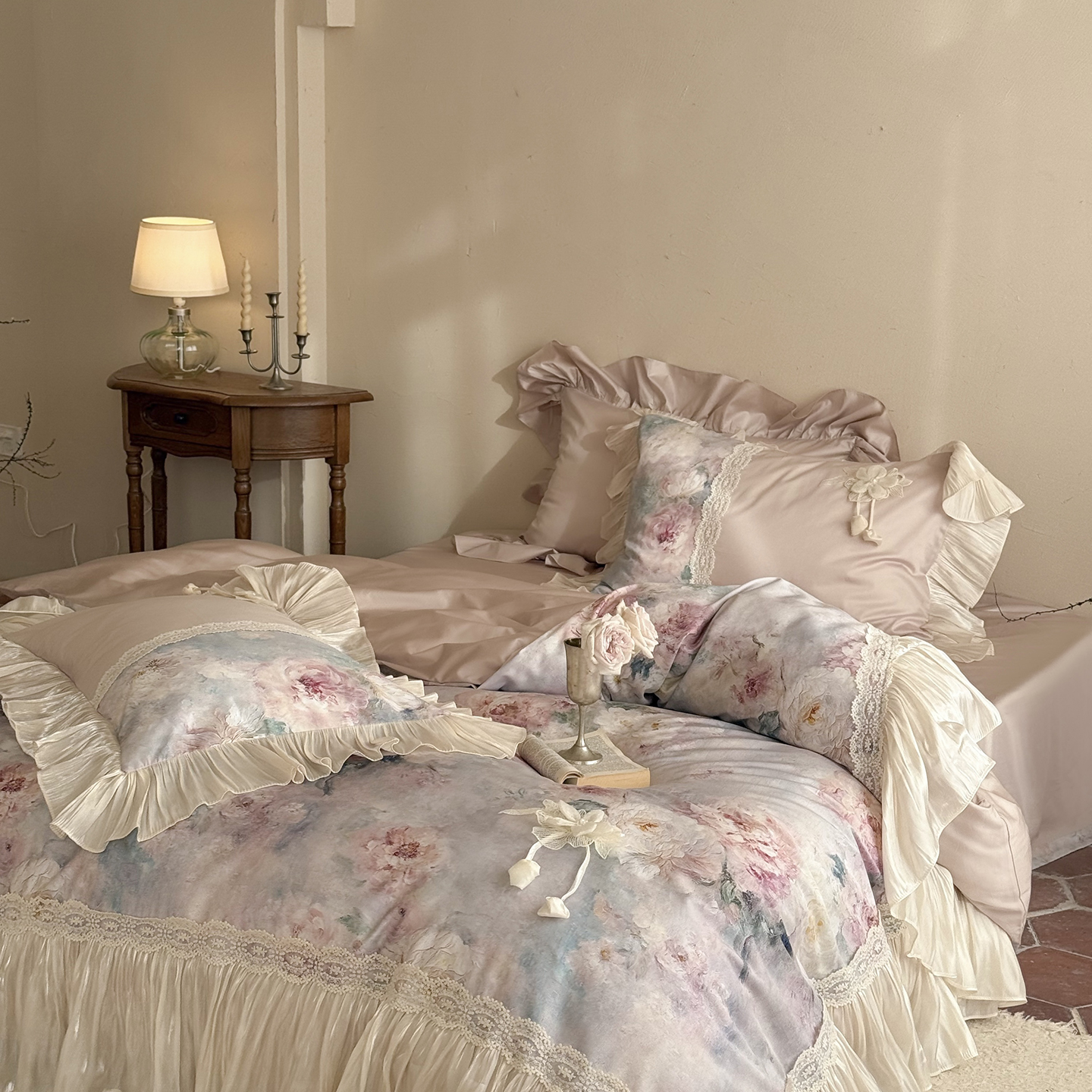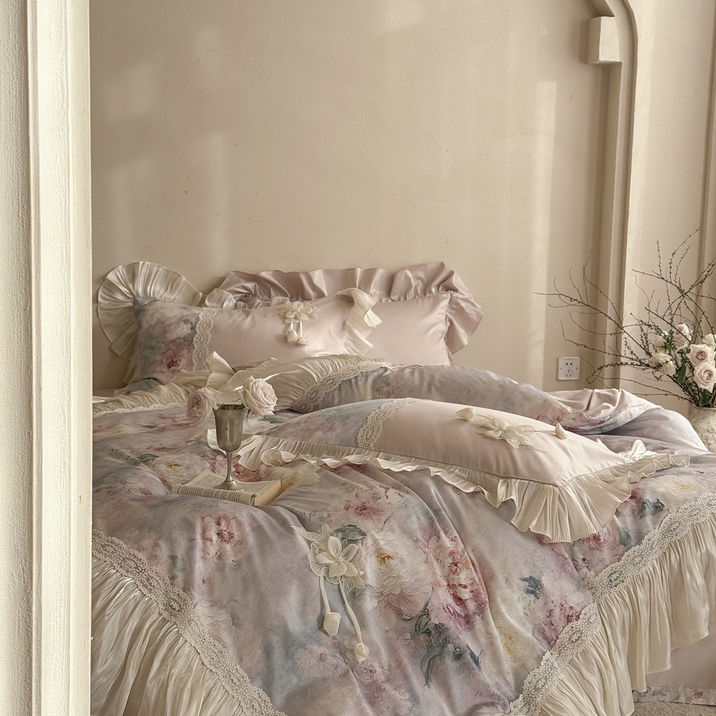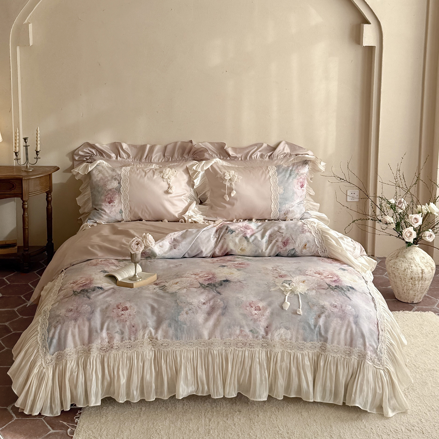 (总)佳汐蓝家纺 2026新款春夏100支全棉复古风数码印花四件套--罗曼花园