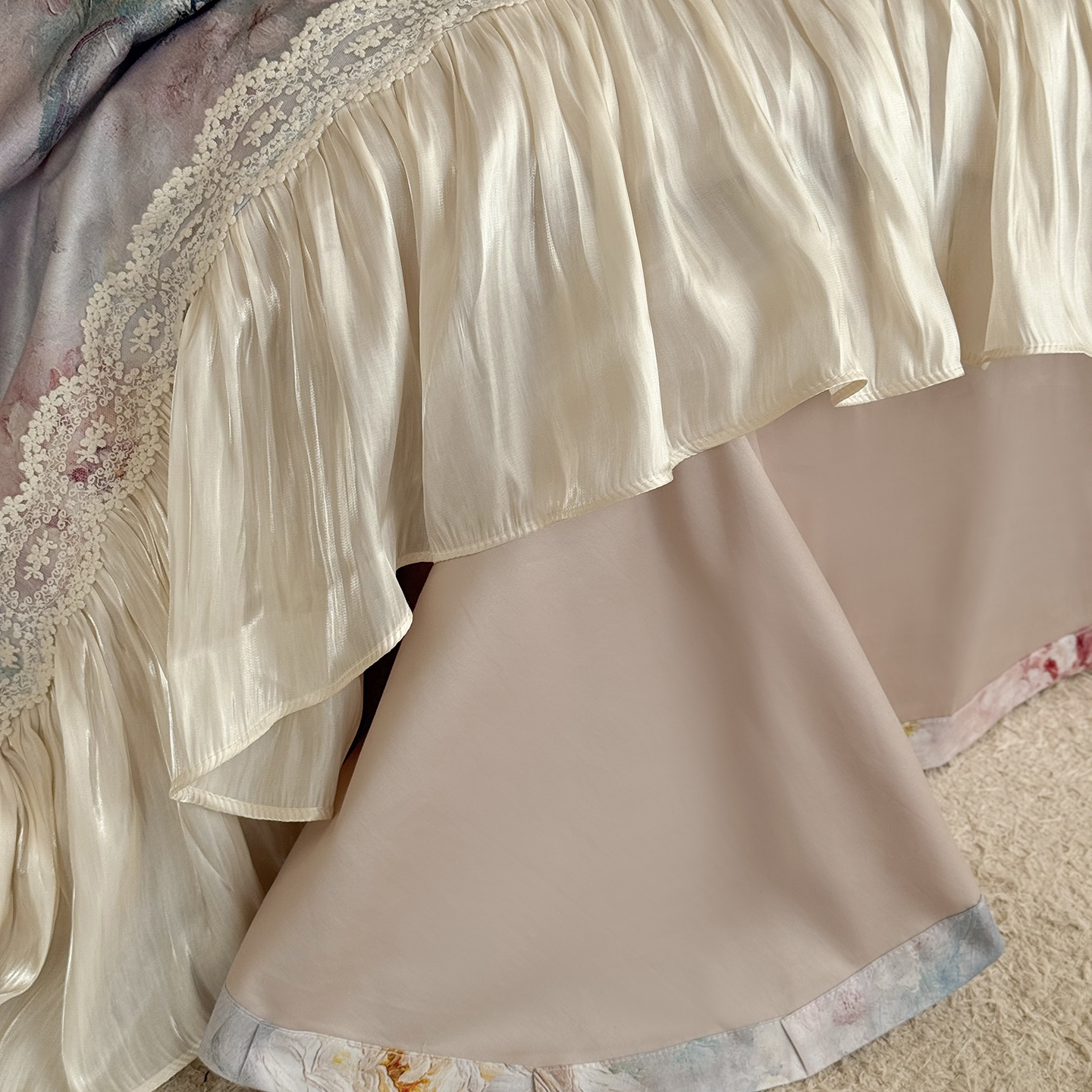 (总)佳汐蓝 2025春夏新品双层皱皱纱刺绣+荷叶边四件套--花与浔,奶白,天蓝
