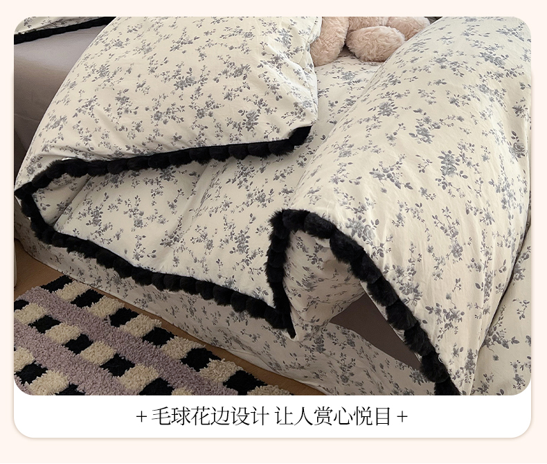 (总)吾欢心 2026春夏新款古法水洗仿棉毛球花边款四件套,半岛花园,茶野,椿屿,丛林小兔,粉豹纹,花颜悦色,咖豹纹,猫猫乐园,萌星人,甜心宝贝,小橘子,幸运小猫