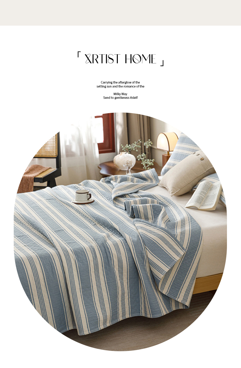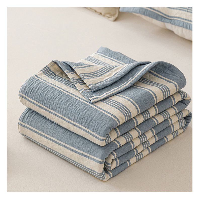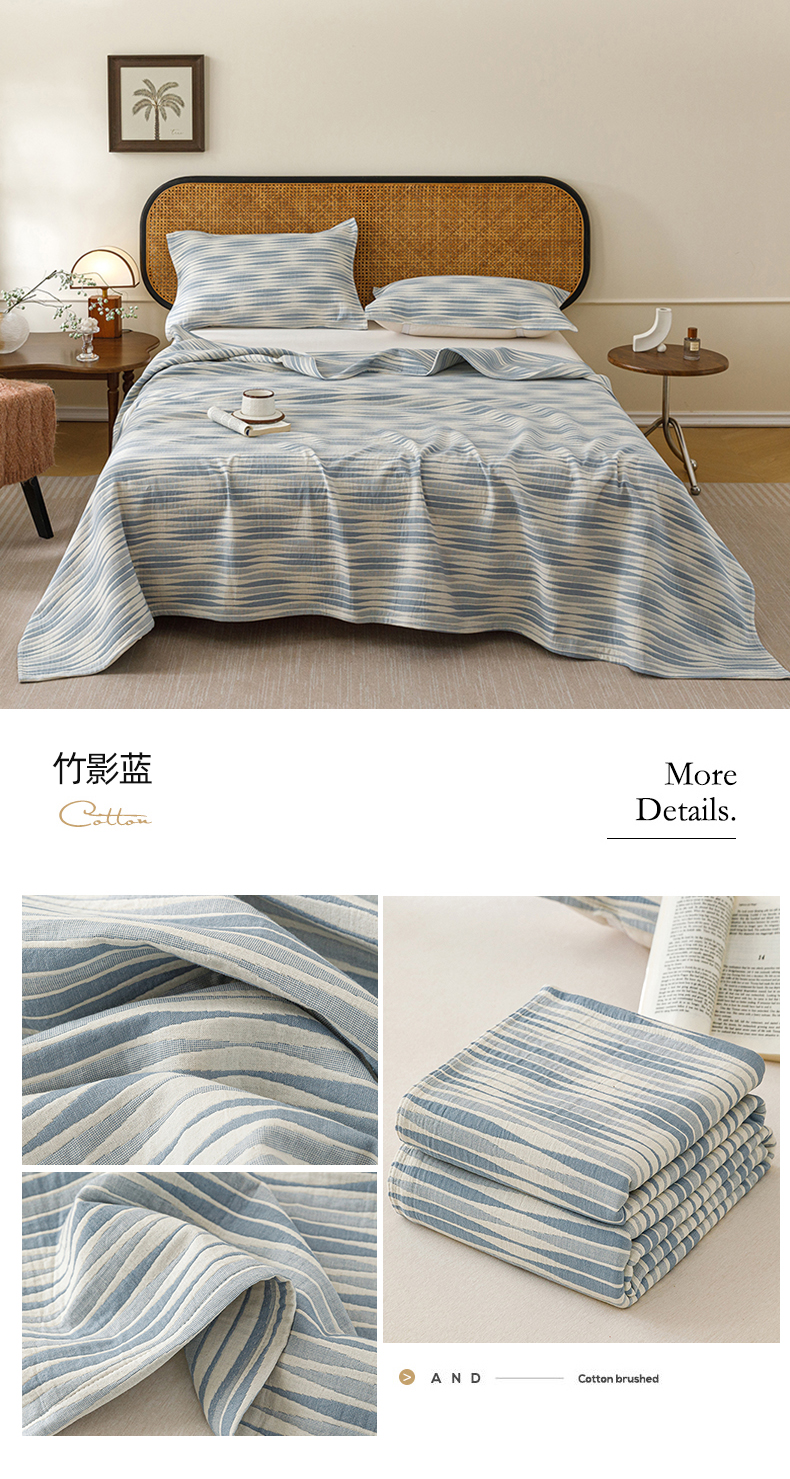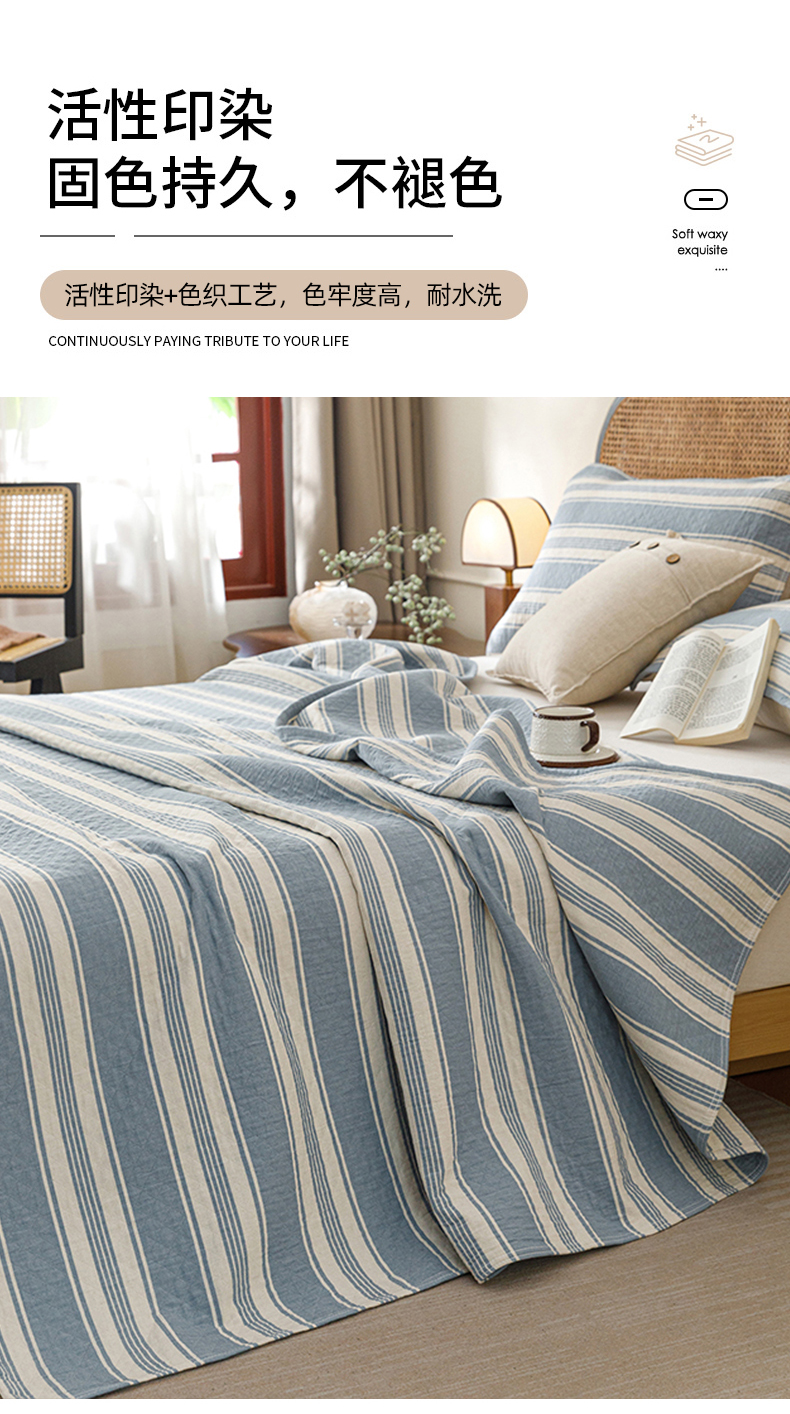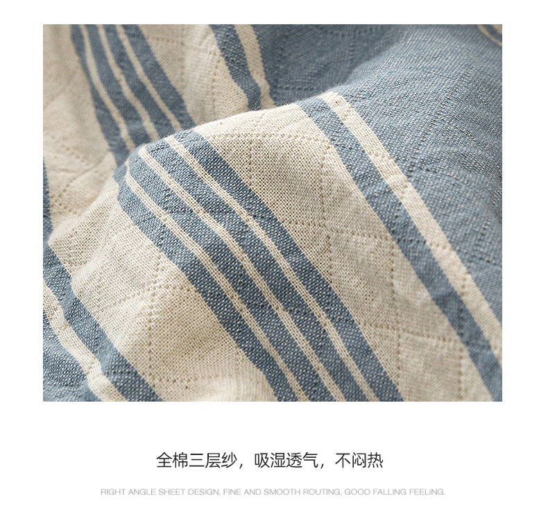悦然毛巾被 2026新款条纹全棉纯棉色织三层纱毛巾被休闲盖毯毯子 闲夏蓝