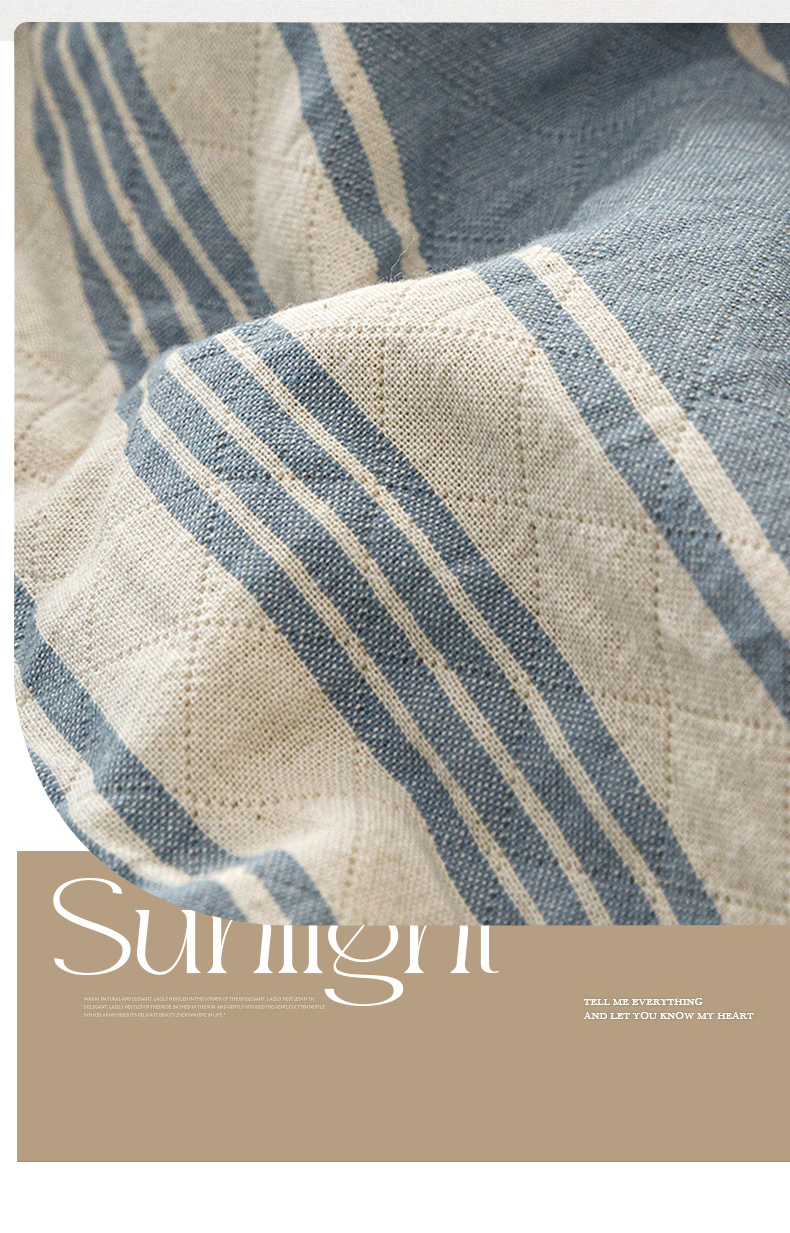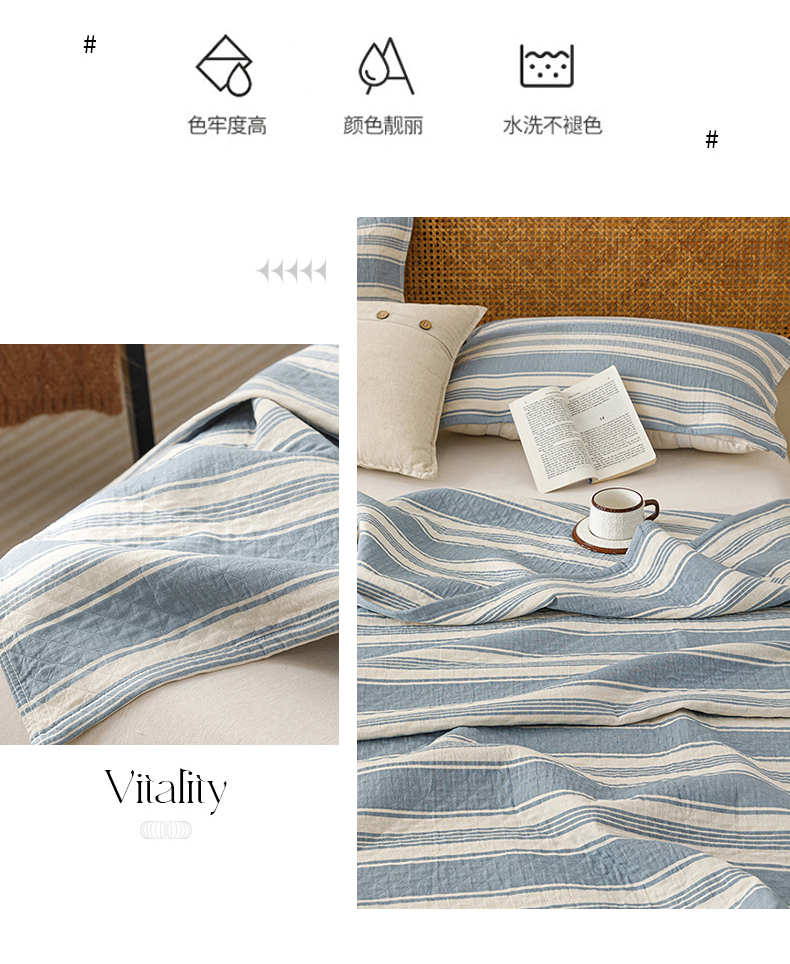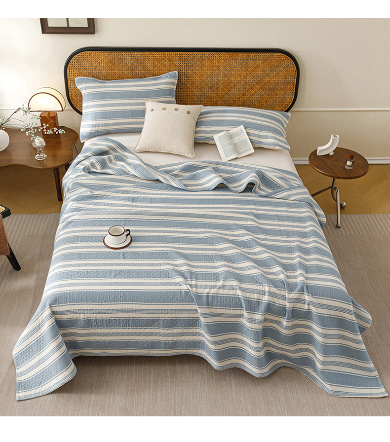 商品名称:悦然毛巾被 2026新款条纹全棉纯棉色织三层纱毛巾被休闲盖毯毯子 闲夏蓝
