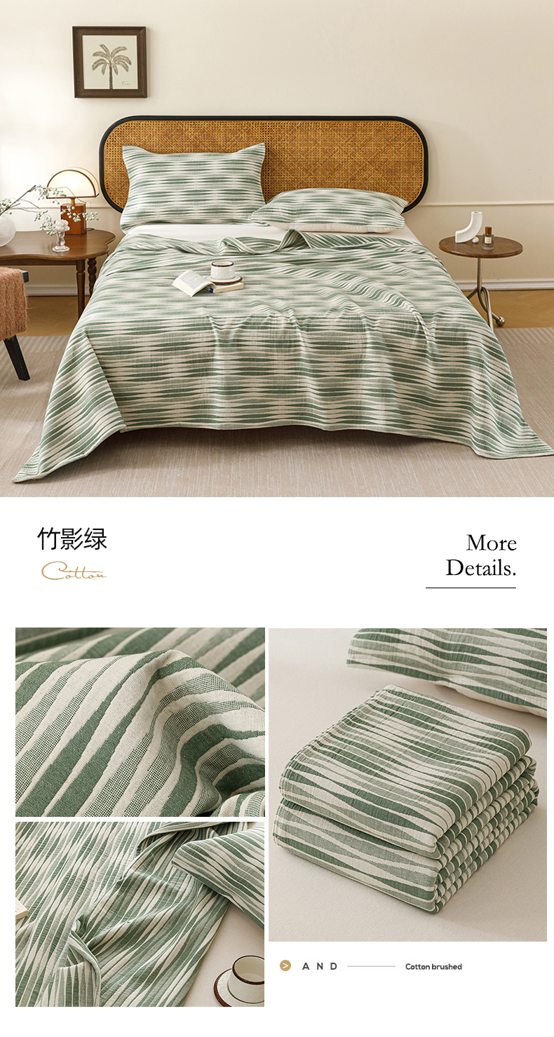 (总)悦然毛巾被 2026新款条纹全棉纯棉色织三层纱毛巾被休闲盖毯毯子,闲夏粉,闲夏灰,闲夏蓝,闲夏绿,竹影粉,竹影灰,竹影蓝,竹影绿,组合图仅供展示不可下单