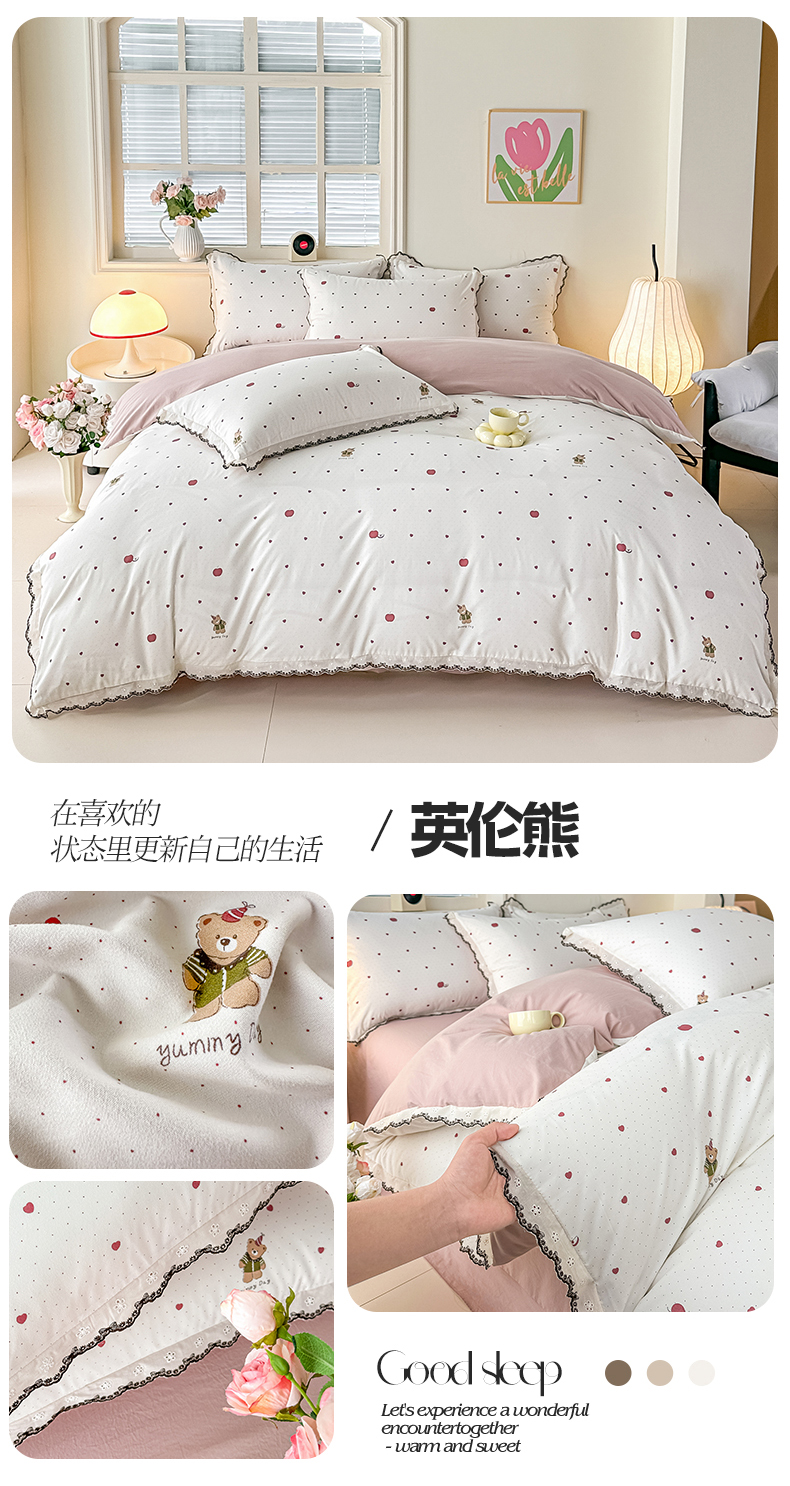 (总)梓之赫 2026新款古法水洗云感棉四件套,爱玛,草莓园,花漾集,花枝笑语,恋心-灰,年轮,素雅-红,小柠檬,小熊依梦-红,小熊依梦-蓝,英伦熊