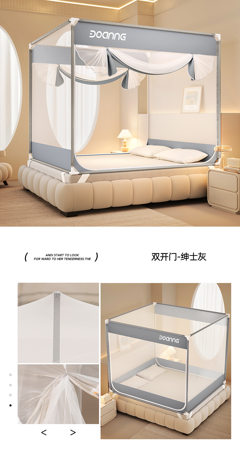 (总)青竹苑 2026新款三门全底外穿坐床式蚊帐儿童防摔防蚊拉链方帐,咘咘灰,大地灰,可可猫,浅米咖,若草绿,松果蓝,条纹星蓝,熊趴趴,夜光灰