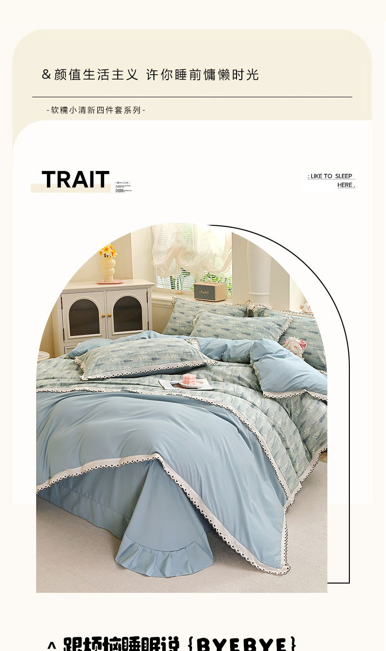 商品名称:北部居 2026新款水洗仿棉韩版花边款田园复古风小清新四件套-第一款 晨曦