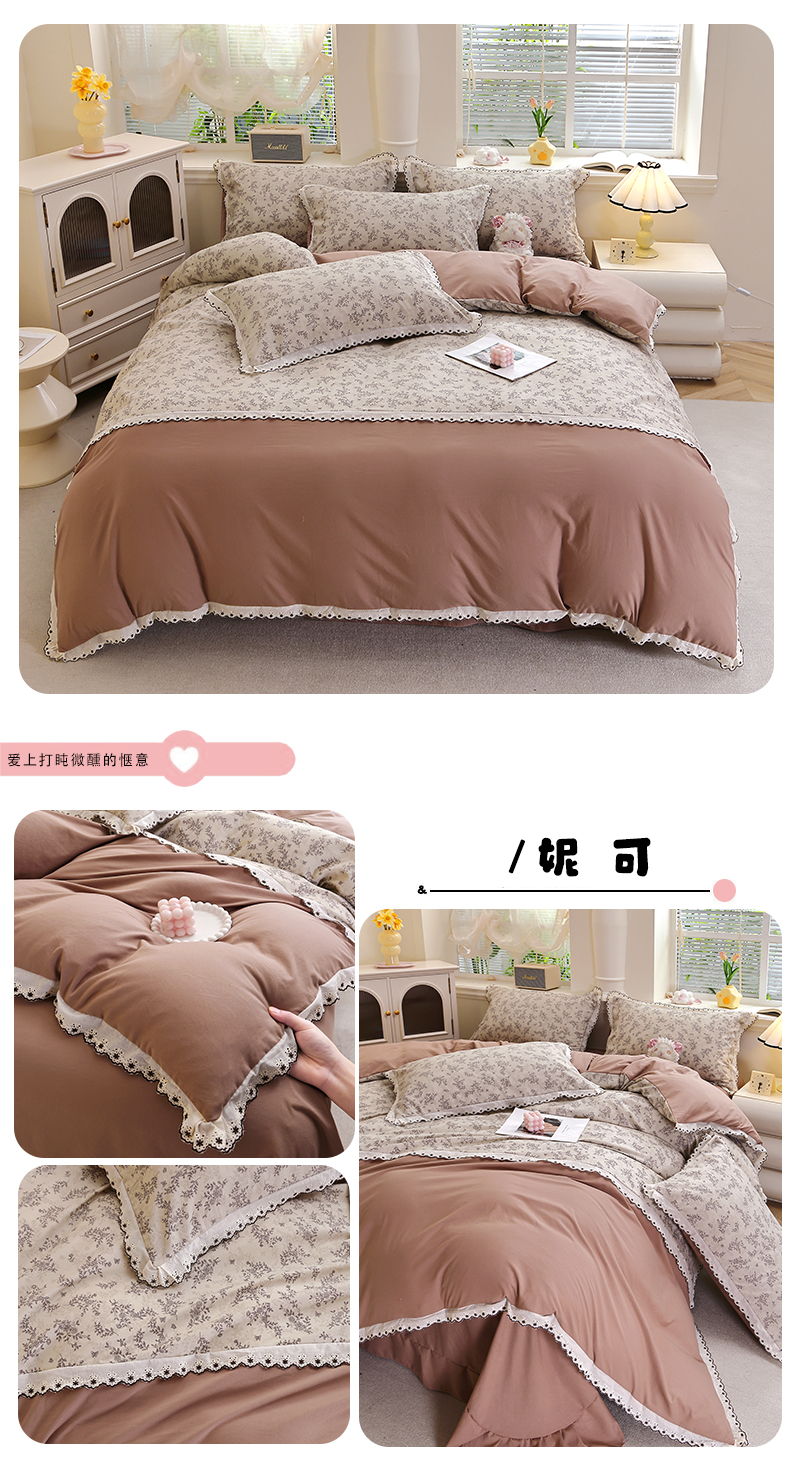 (总)北部居 2026新款水洗仿棉韩版花边款田园复古风小清新四件套,安琪拉,豹纹魅力,春旭,杜桑花园,枫晚,佳丽斯,洛兰,松野,小精灵,紫馨