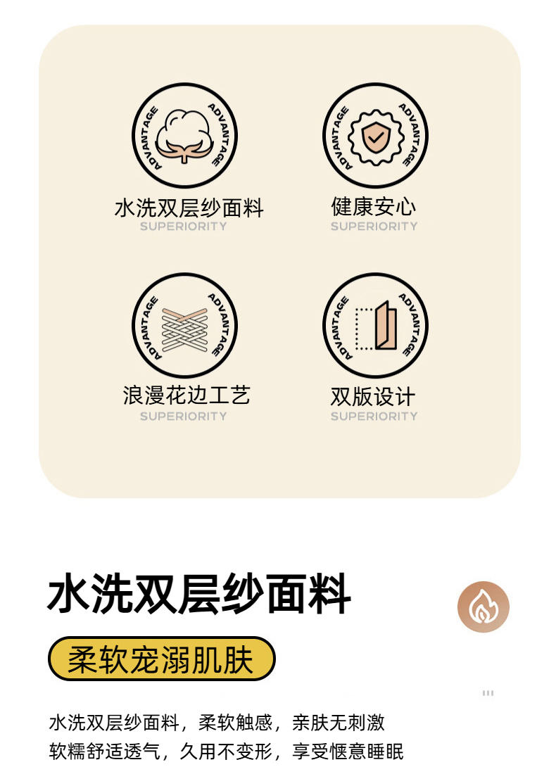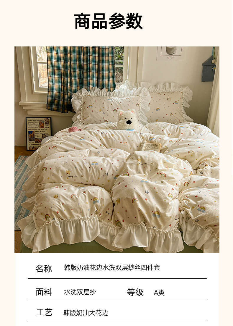 商品名称:(总)田子坊(原亨通) 2026新款韩版奶油花边水洗双层纱四件套