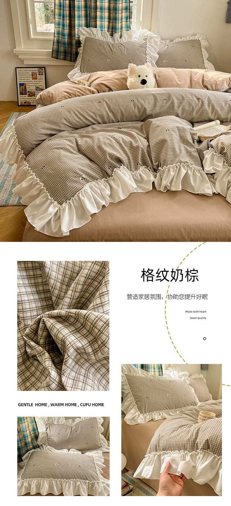 (总)田子坊家纺 2026新款亲肤棉花边四件套,春的气息-棕,法式庄园,美心,清风浅浅,守护甜心-粉,守护甜心-蓝,无忧花开-粉,寻觅-浅米,云上芭蕾