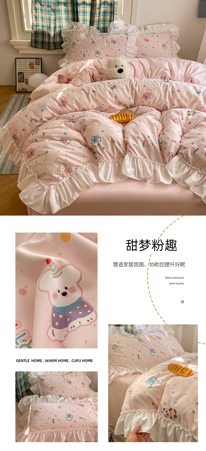 (总)田子坊(原亨通) 2026春夏新款卡通贴布绣水洗棉花边四件套,背带小象,晚安小狗,绅士熊,幸运草莓兔,功夫熊猫