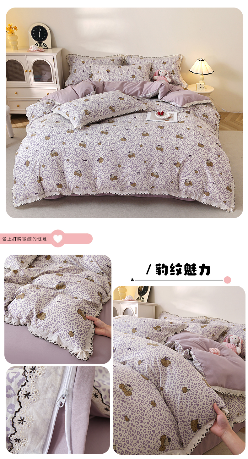 (总)北部居 2026新款水洗仿棉韩版花边款田园复古风小清新四件套,安琪拉,豹纹魅力,春旭,杜桑花园,枫晚,佳丽斯,洛兰,松野,小精灵,紫馨