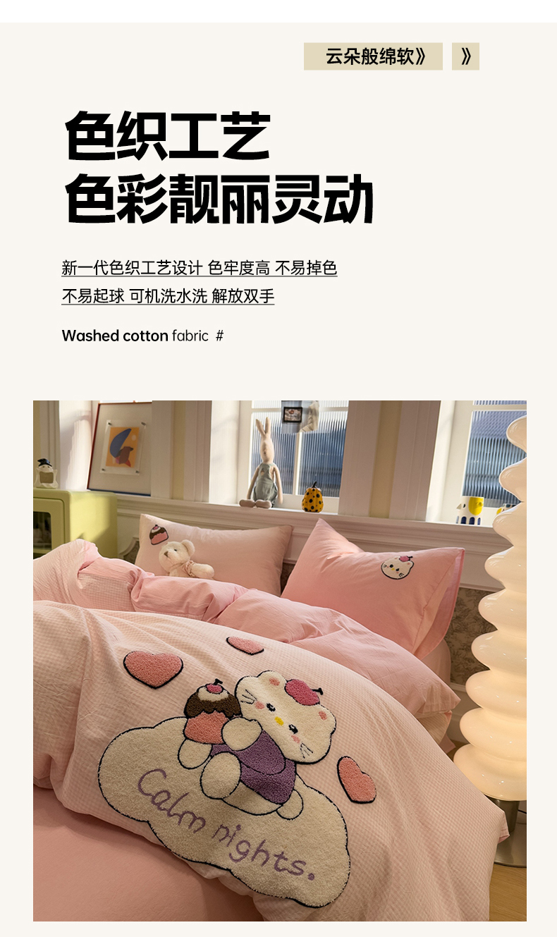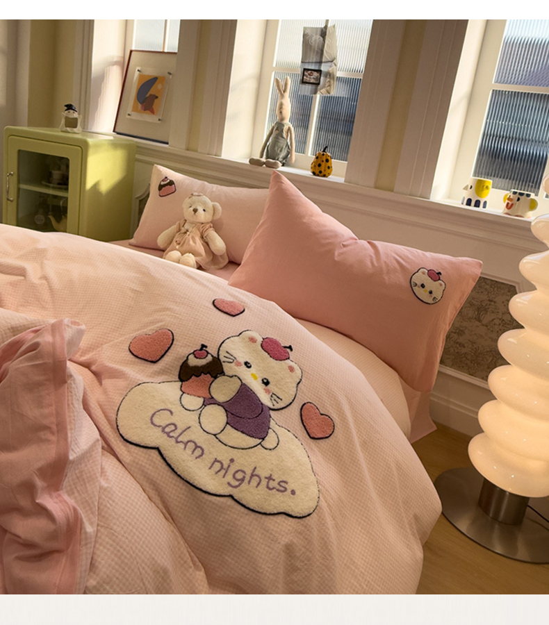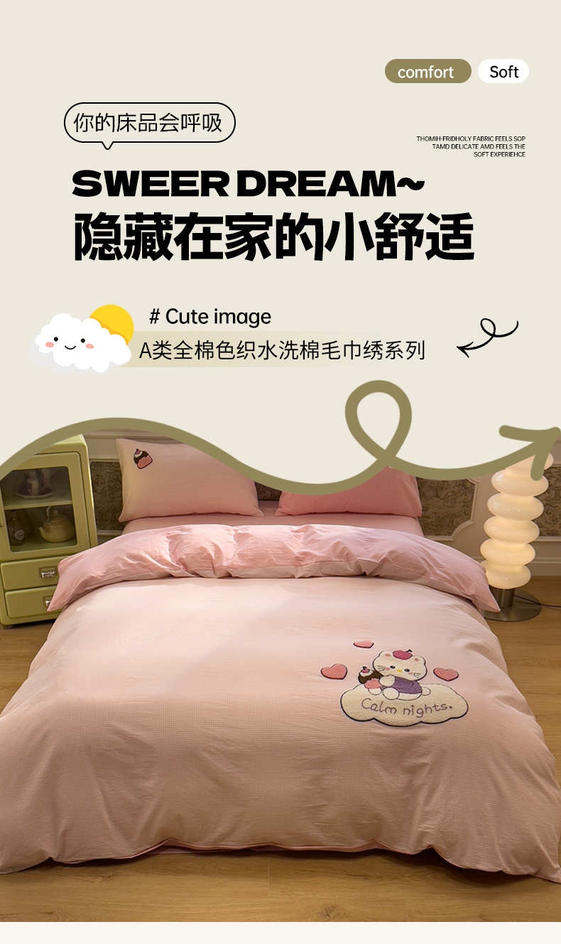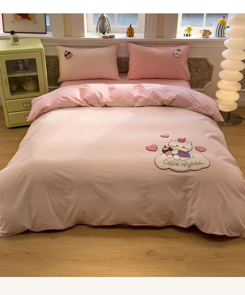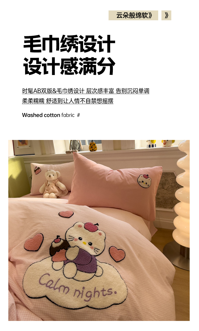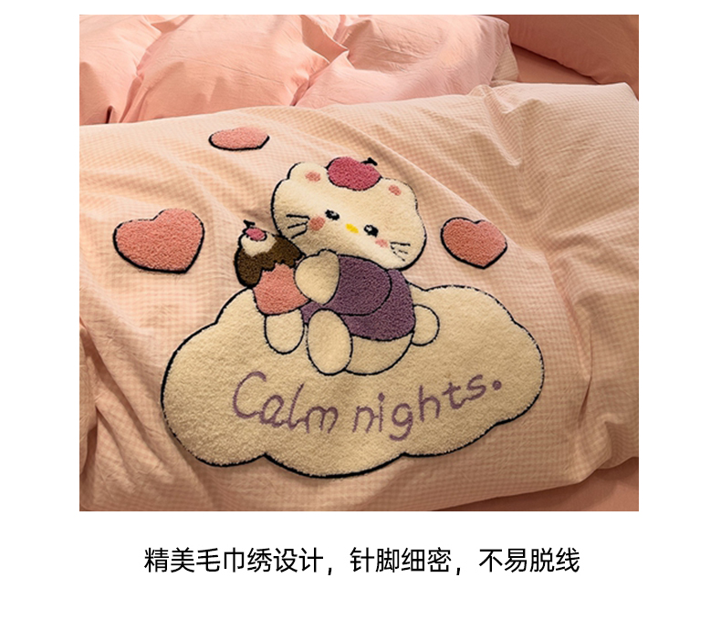 当前位置: 91家纺网 > 商品网购 > 床品套件 > 四件套 > 全棉普通四件套 > 麦田家纺 2026加密A类色织全棉纯棉水洗棉毛巾绣四件套 云朵KT