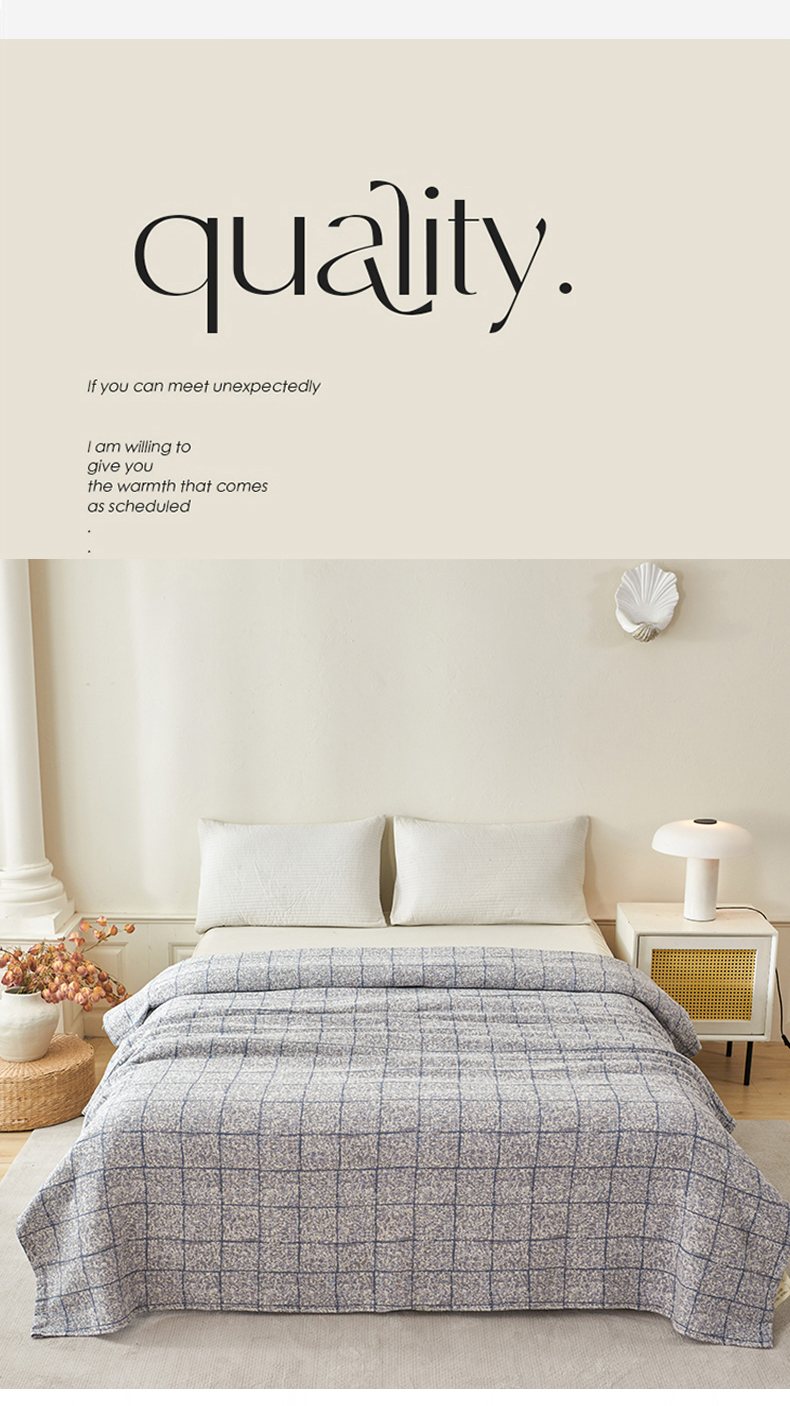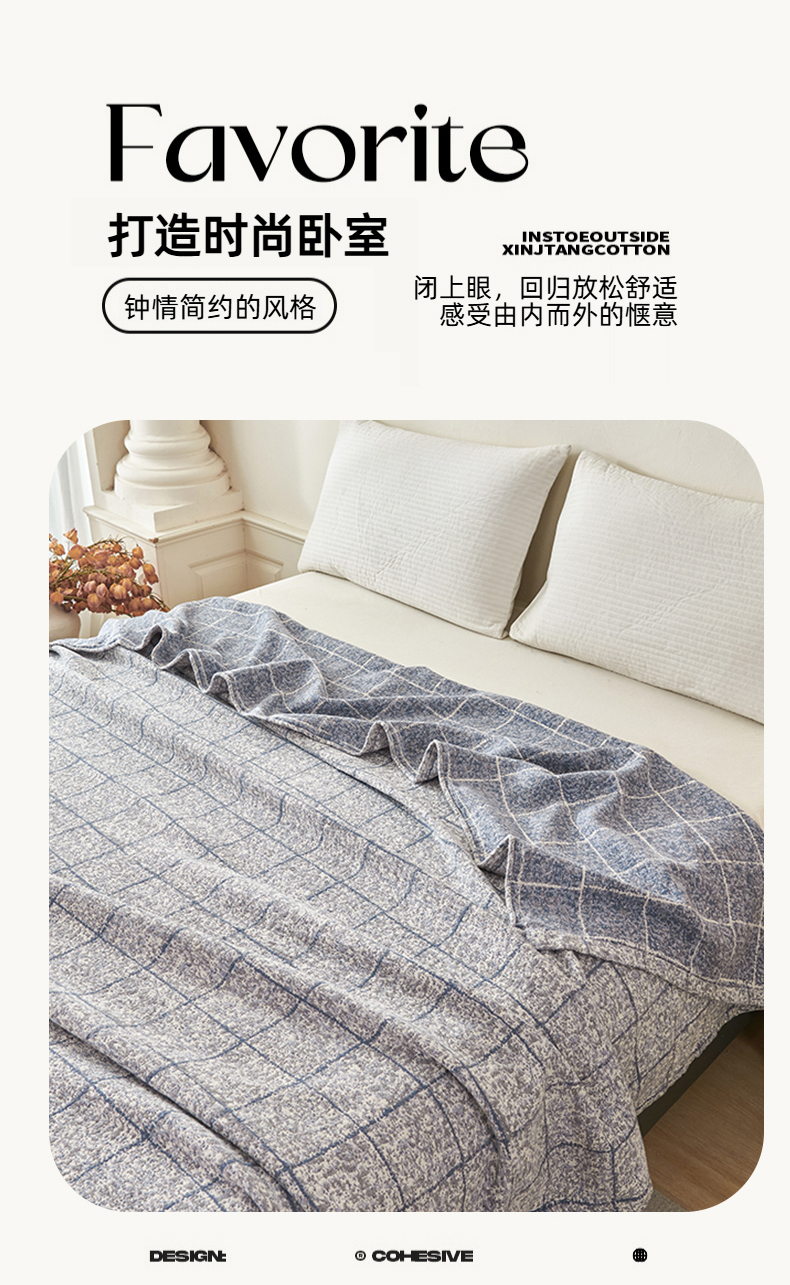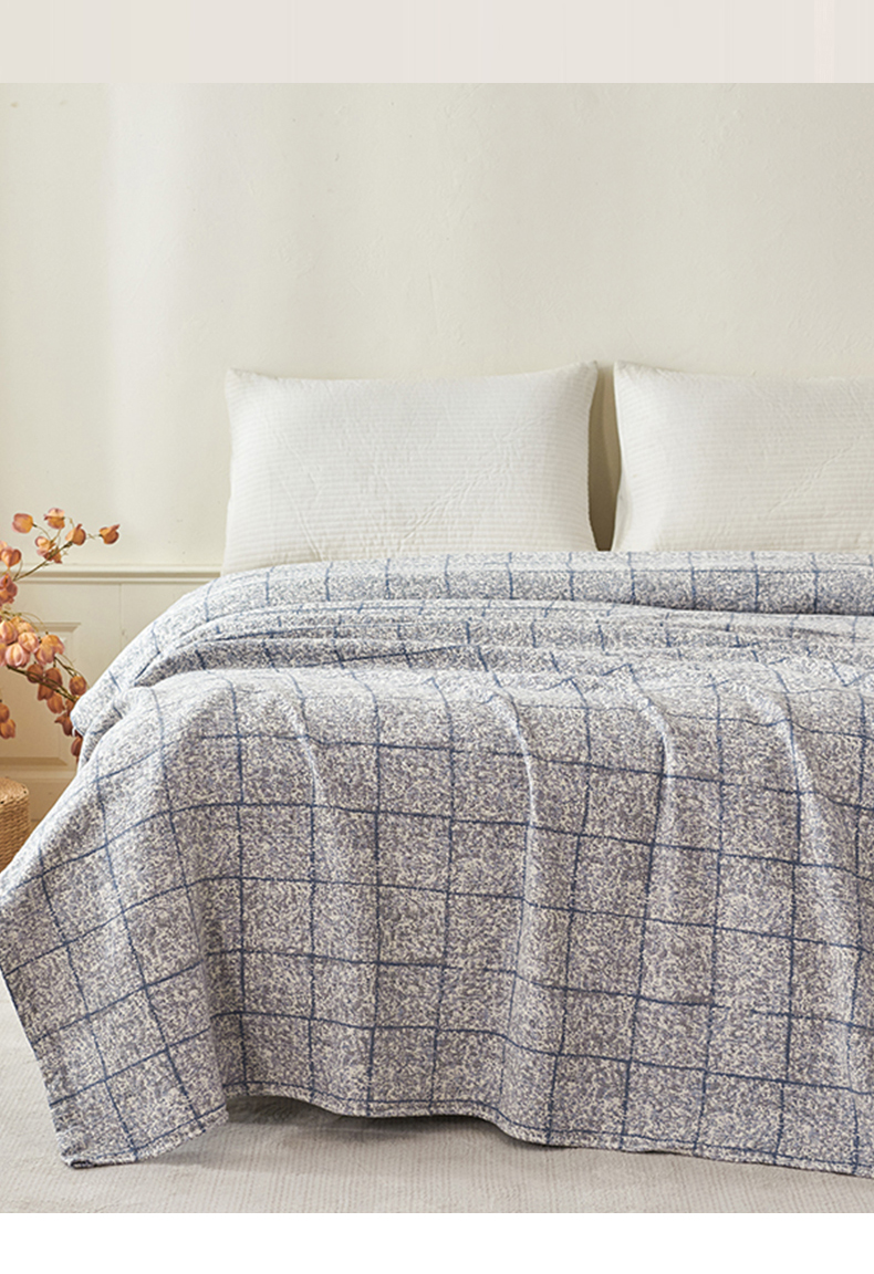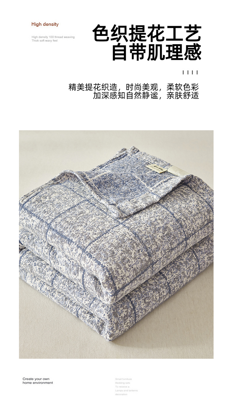 商品名称:悦然毛巾被 2026新款全棉纯棉三层水洗色织纱布毛巾被盖毯夏凉被空调被 清格慢居蓝