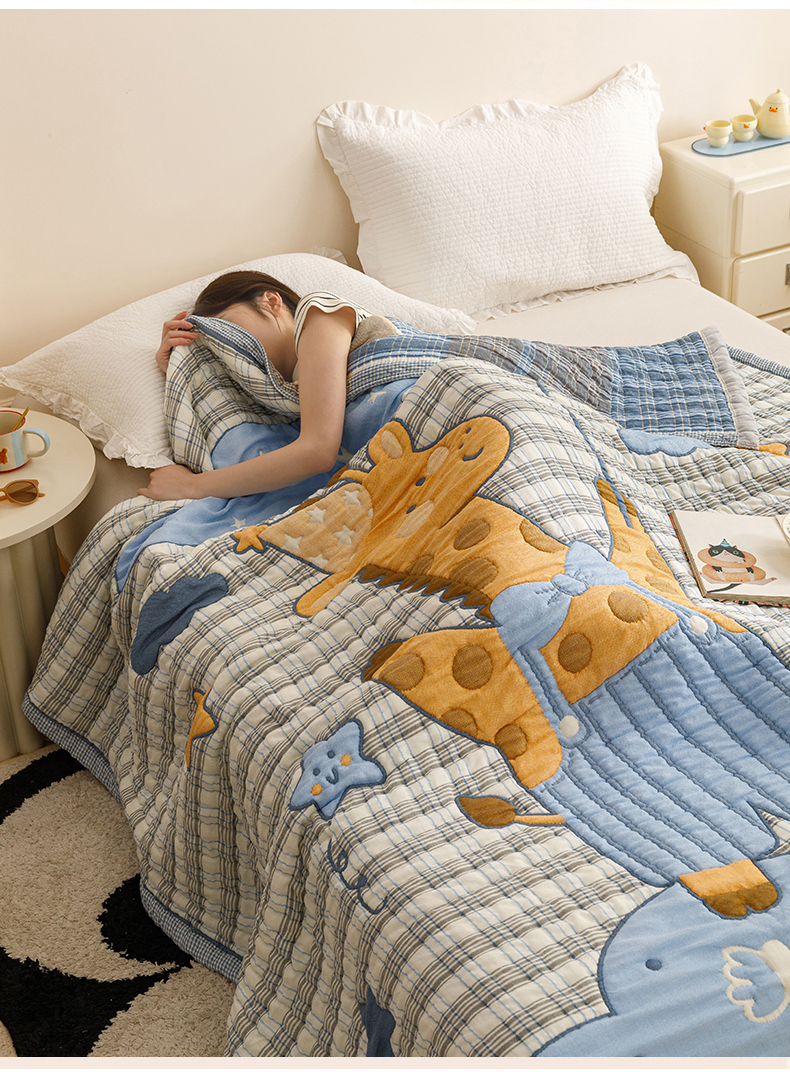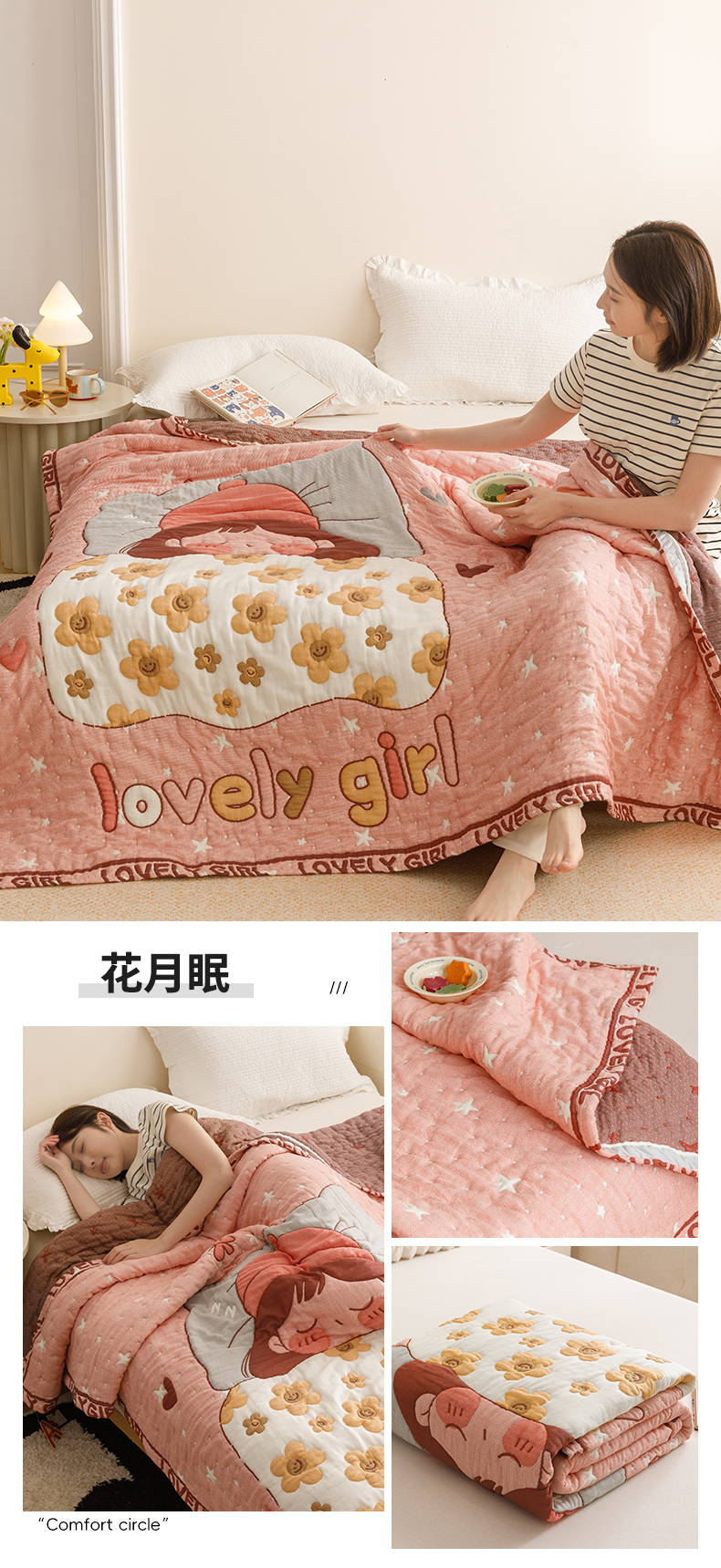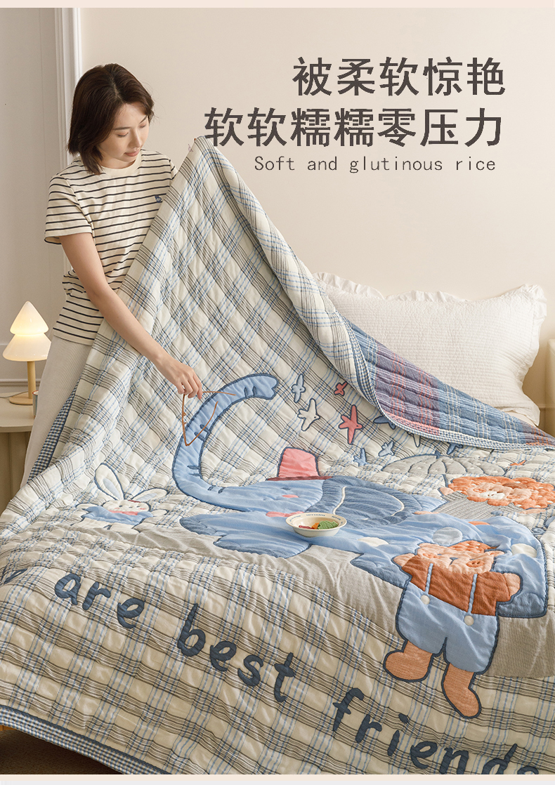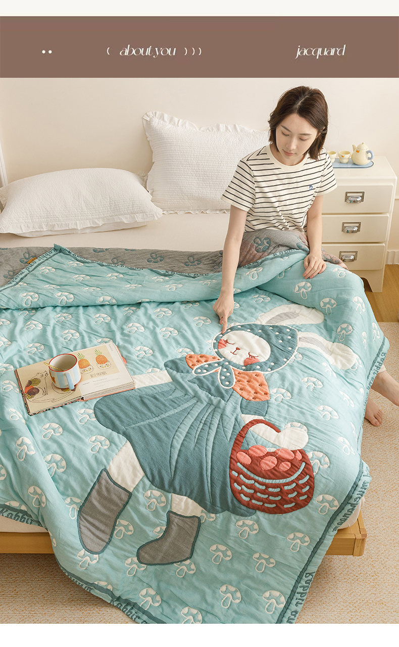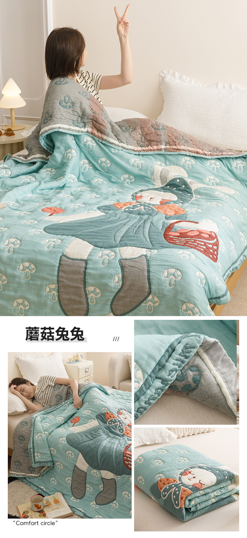 朴尔家纺-毛巾被 2026新品纯棉云朵棉卡通独版十层加厚纱布泡芙被毛巾被 蘑菇兔兔