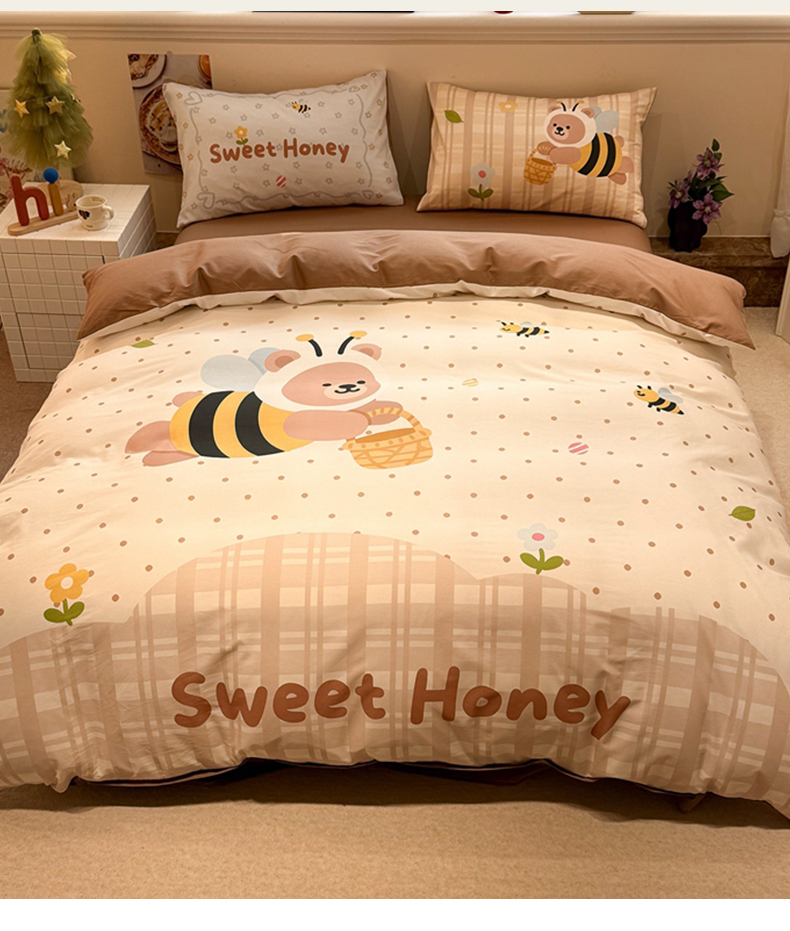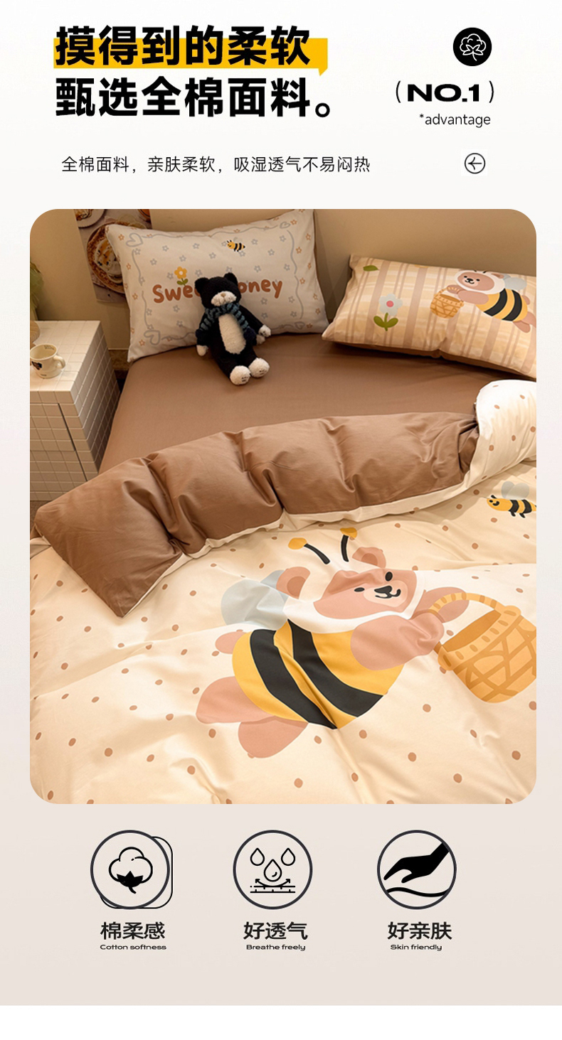 当前位置: 91家纺网 > 商品网购 > 床品套件 > 四件套 > 全棉普通四件套 > 麦田家纺 2026新款全棉13070数码印花四件套 蜜蜂小熊