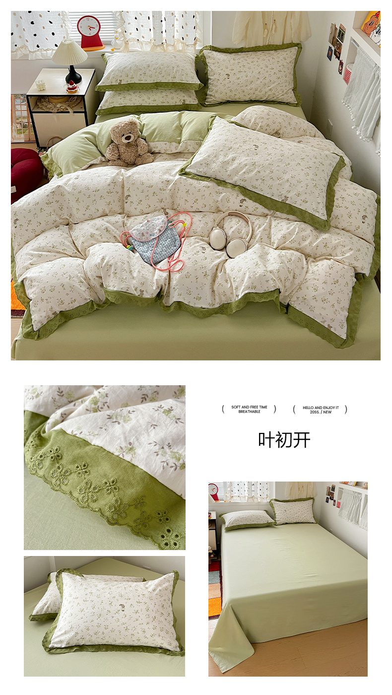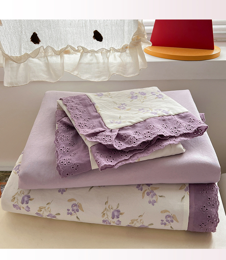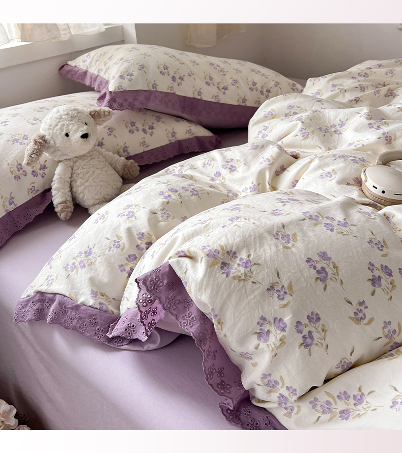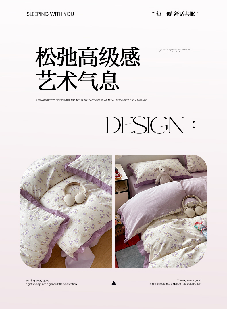 (总)逸林家纺《原希尔顿逸林》 2026新款春款古法水洗棉法式立体全棉花边拼接款四件套学生三件套单品被套枕套,狗狗家族,兔子园,知否,雨沫,花影,七分甜,漫花蝶舞,莓朵,组合图仅供展示-不可下单