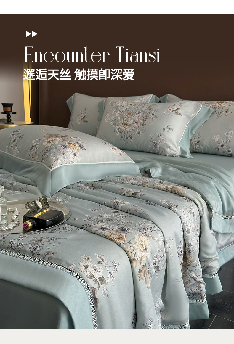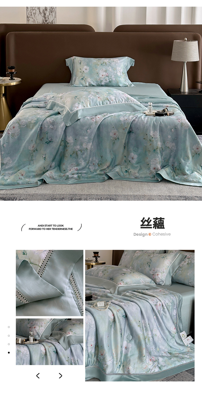 娇逸家居 2026新款60s天丝数码印花夏被夏凉被空调被四件套 妙颜-绿