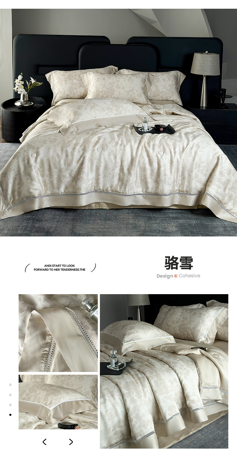 (总)娇逸家居 2025新款60支天丝棉提花贵妇银丝春秋被被子被芯可配同系列枕套床单,繁星咖,露华粉,洛神白,美乐粉,依琳白,悦动白,珠箔灰