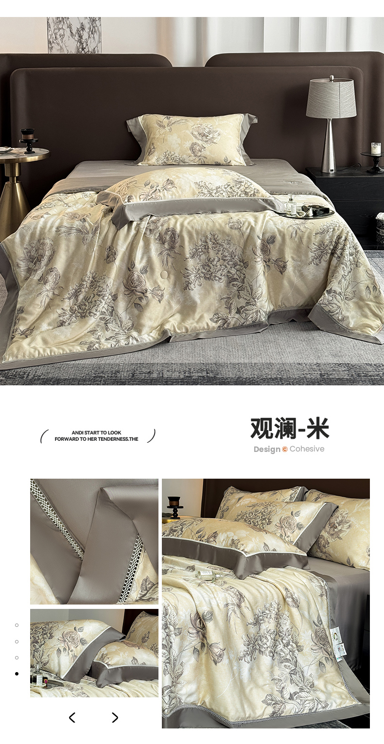 (总)娇逸家居 2026新款60天丝素色金丝提花拼边款夏被夏凉被空调被四件套-芙莉,组合图仅做展示不可下单,奶酪,素灰,汐蓝,夏绿,仙粉