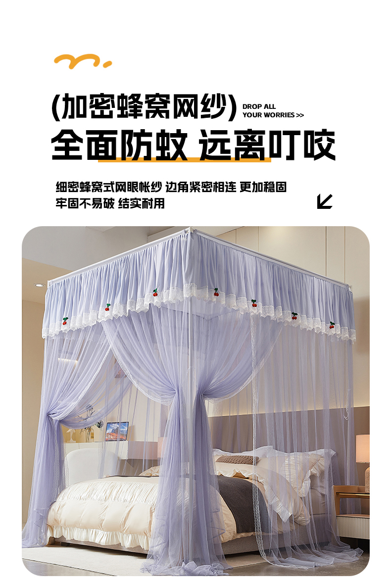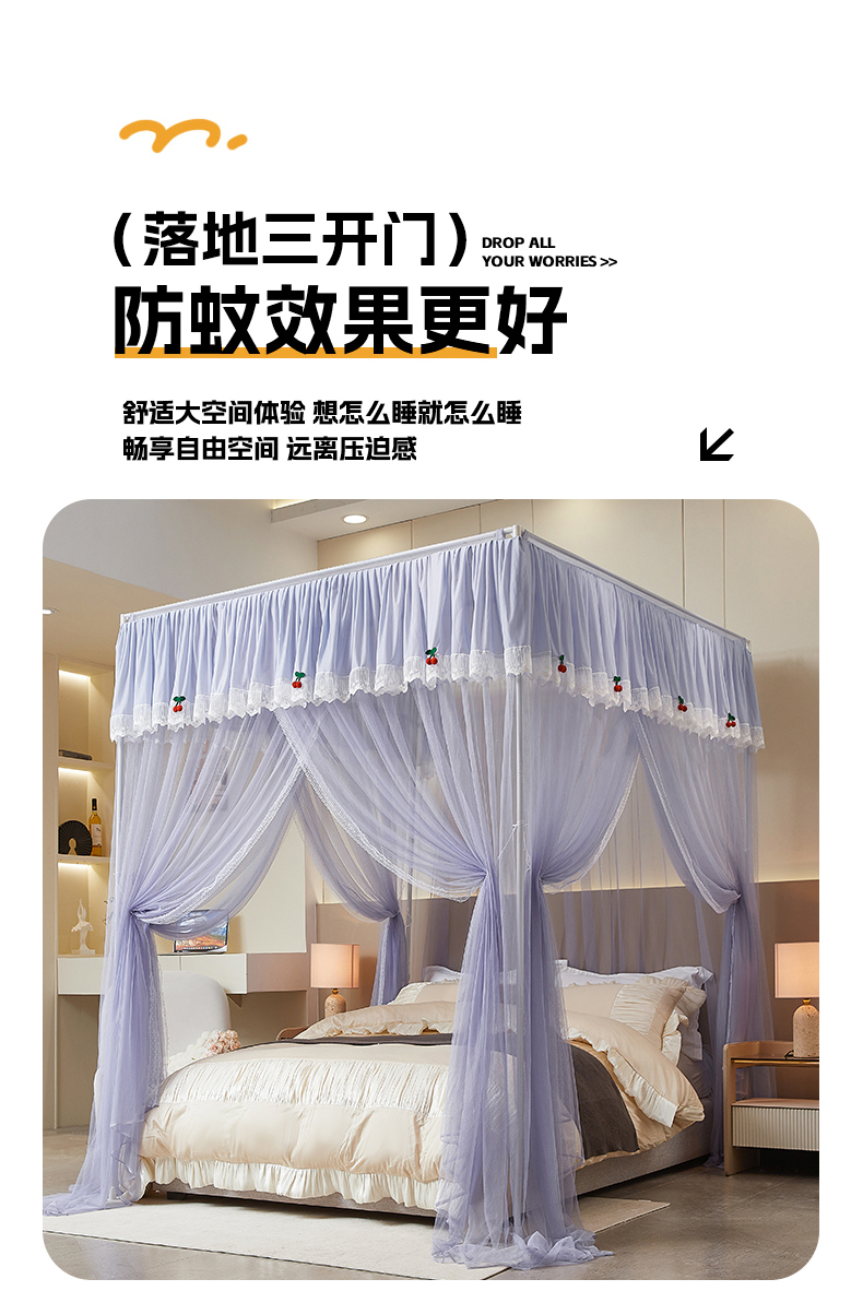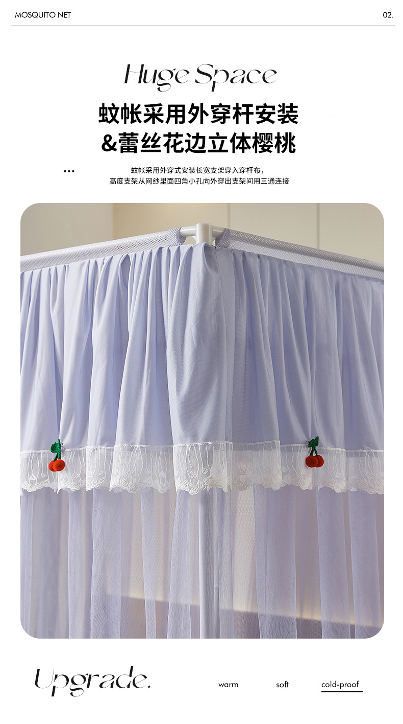 商品名称:(总)雪姿家纺 2026新款刺绣花边落地宫廷外穿杆蚊帐-落地樱桃