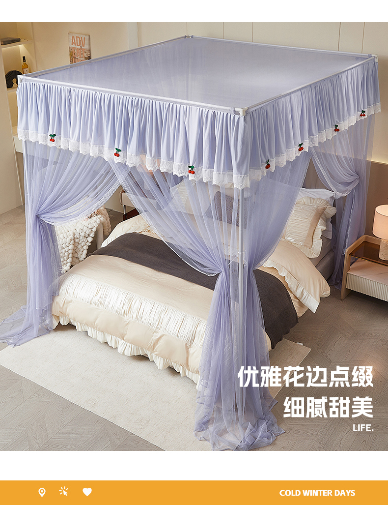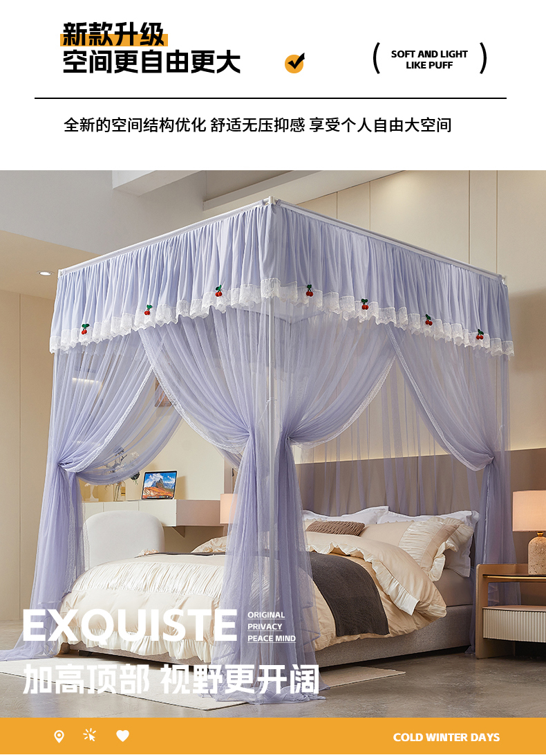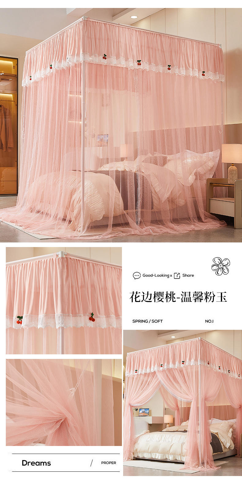 (总)雪姿家纺 2026新款刺绣花边落地宫廷外穿杆蚊帐-落地樱桃