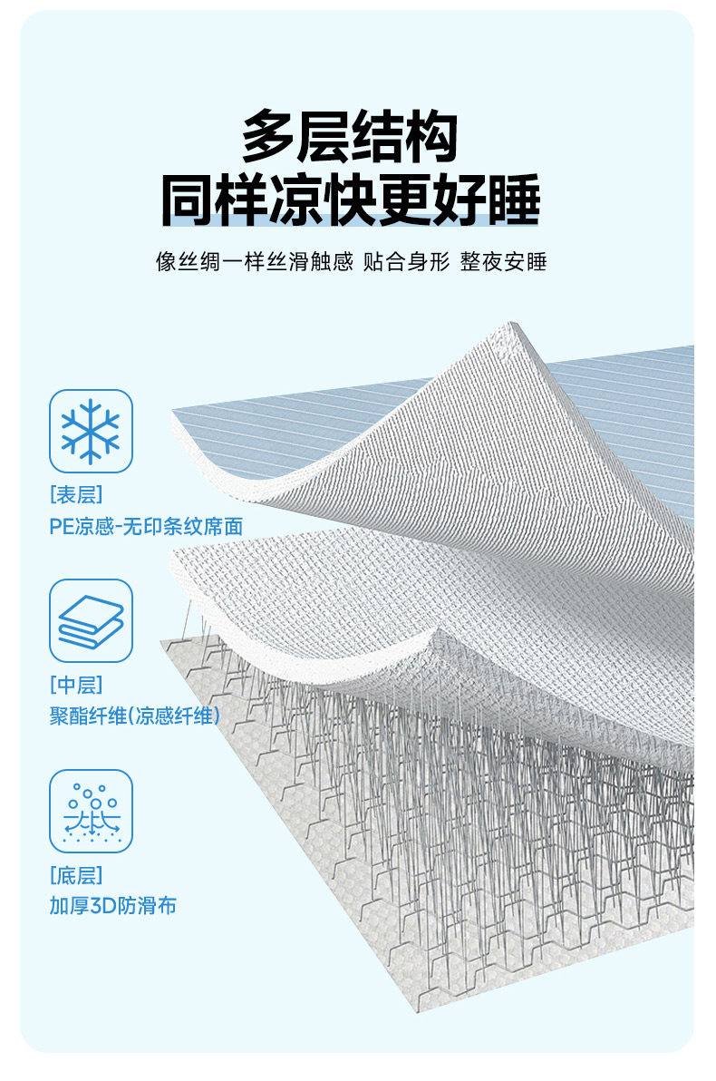 (总)小牛席业 2026新款PE凉感纤维无印风纯色凉感冰丝席凉席席子(床笠款)
