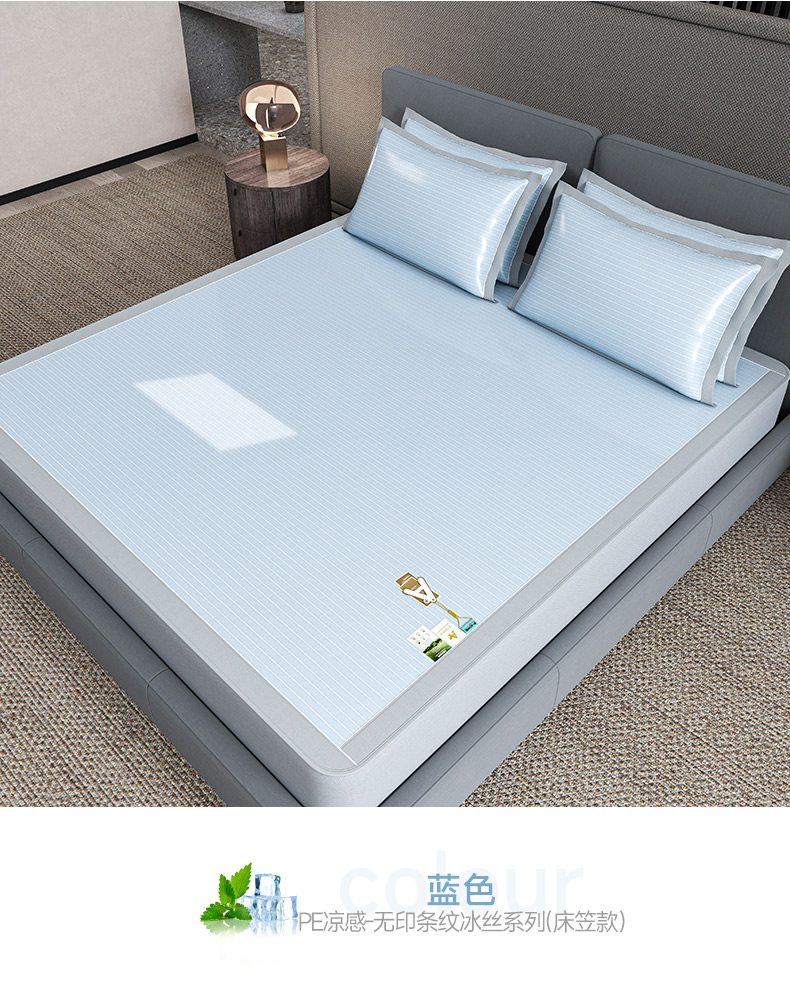 (总)2023新款超精密冰丝席-小斜纹系列-床笠款藤席凉席竹席,粉色,蓝色,绿色,银灰