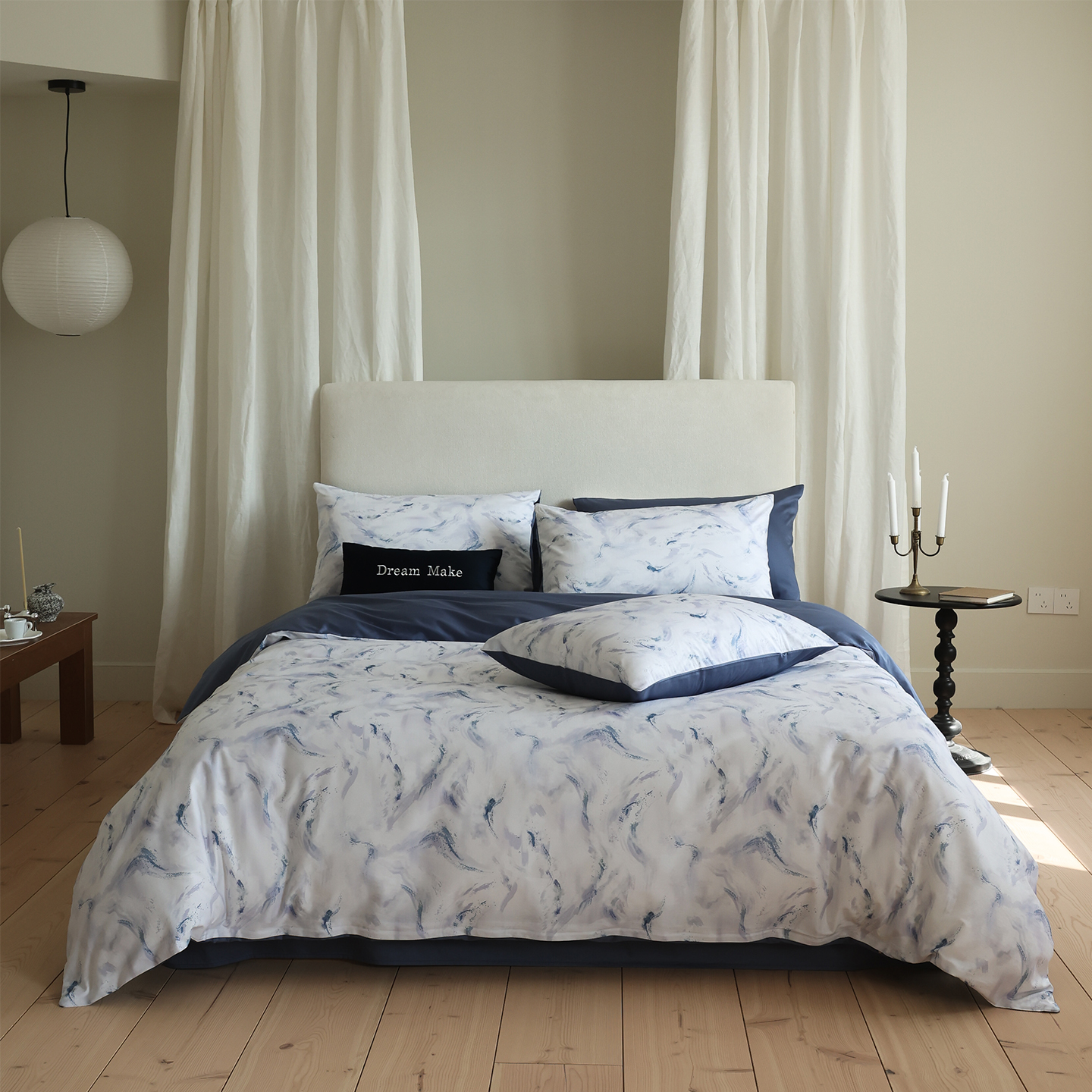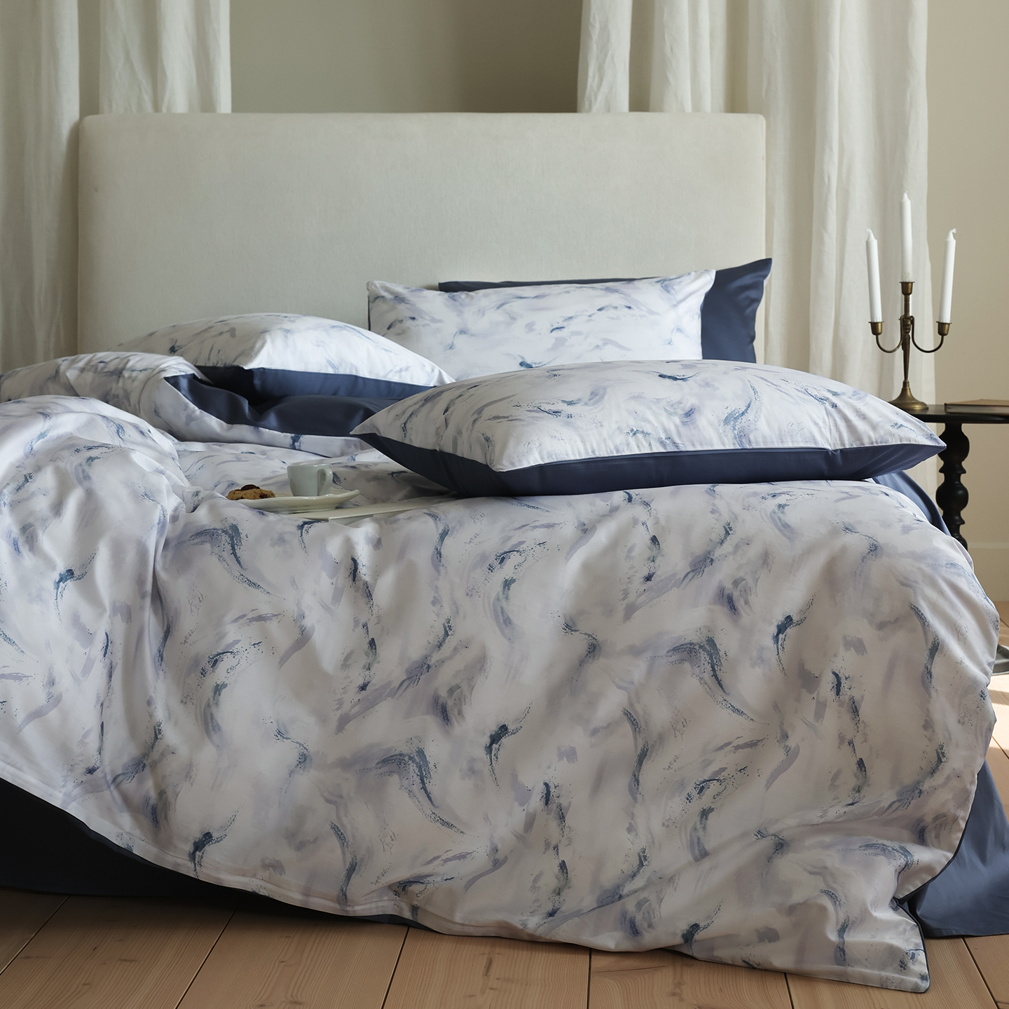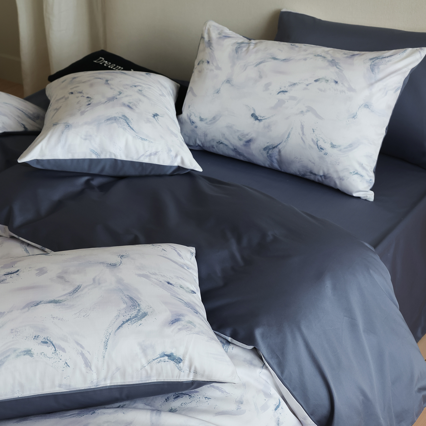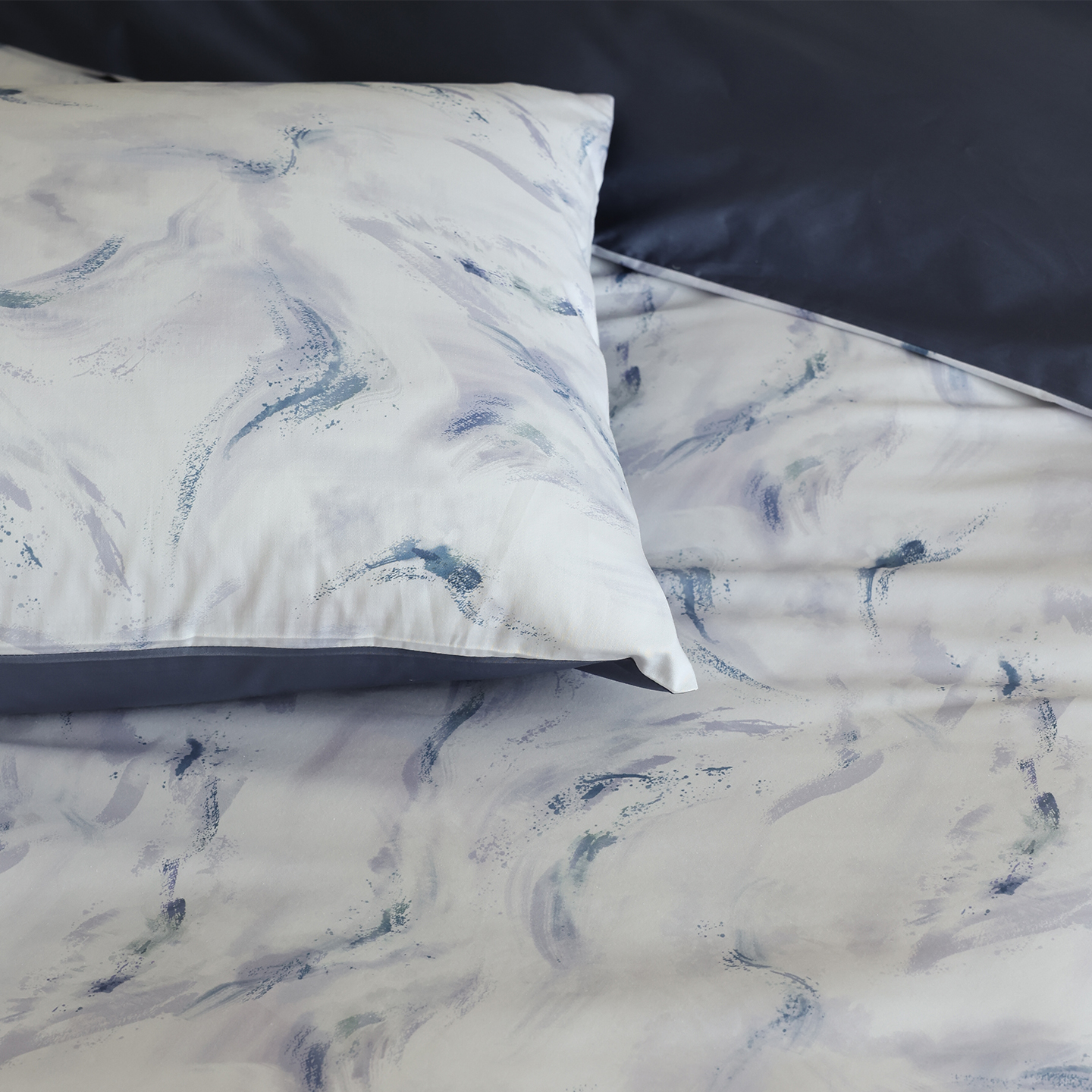 商品名称:ONE TWO ONE 121 【会员-20】【控价商品】【提供买家秀】【专版花型】2026新款100s长绒棉全棉床上用品数码印花四件套-听潮絮语 听潮絮语-海蓝