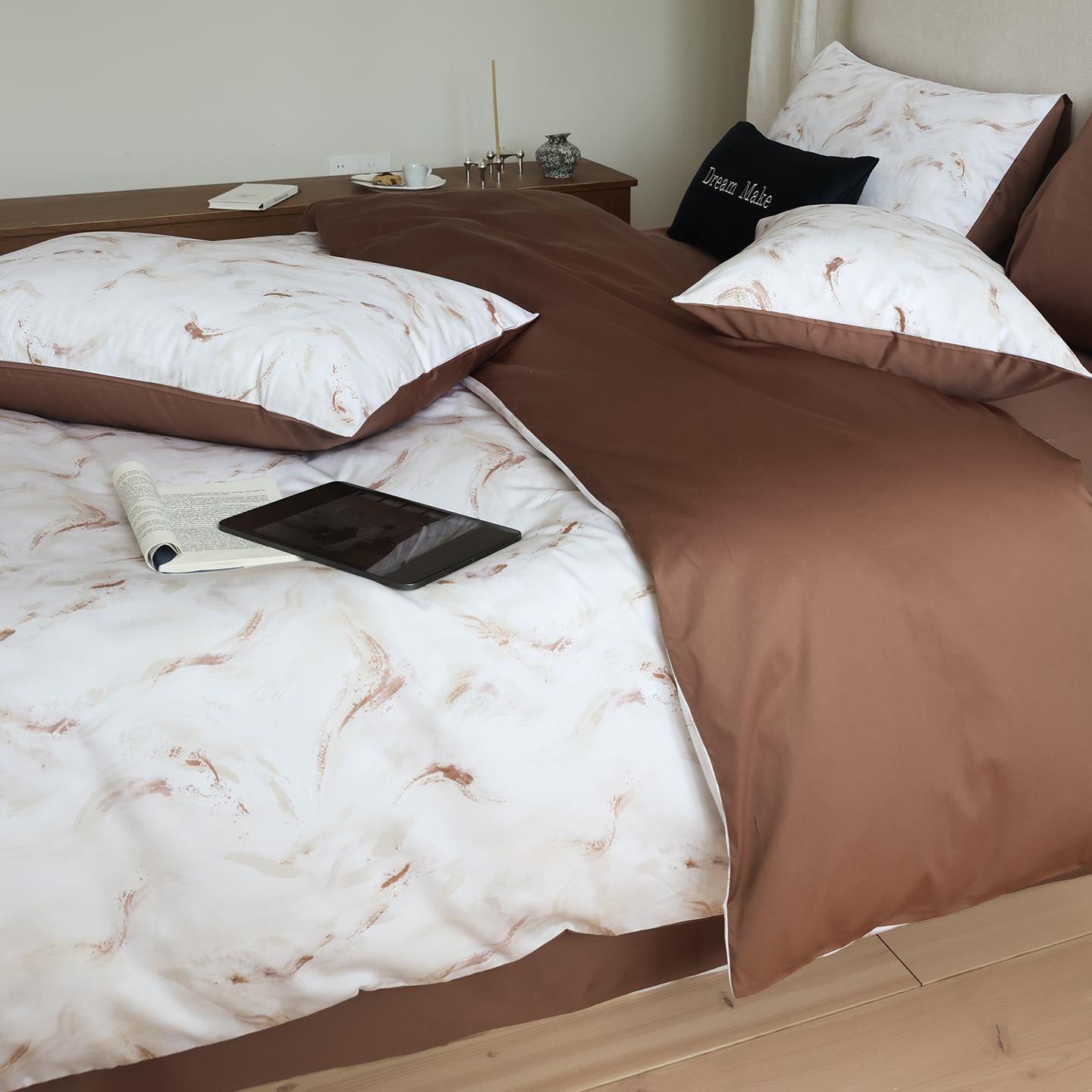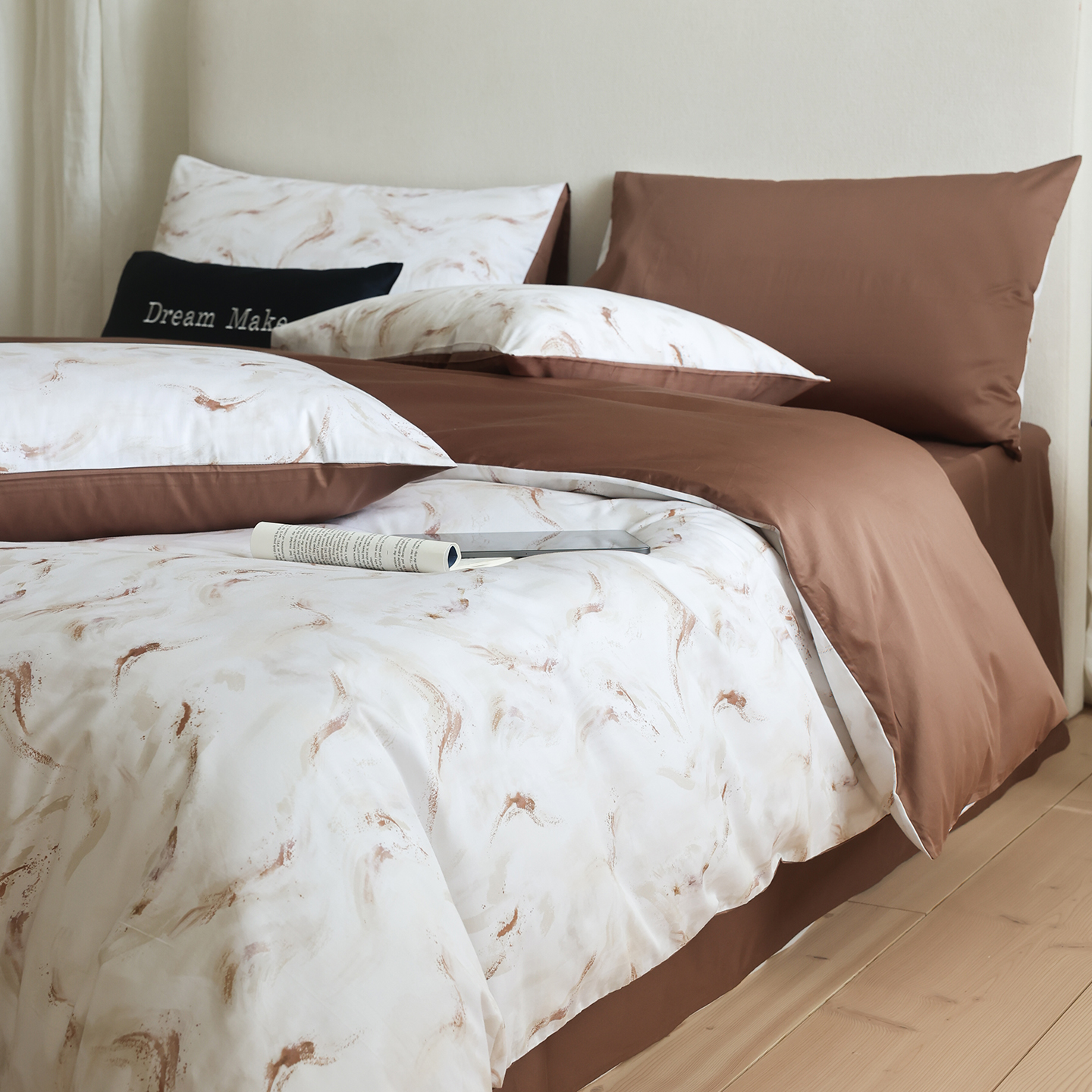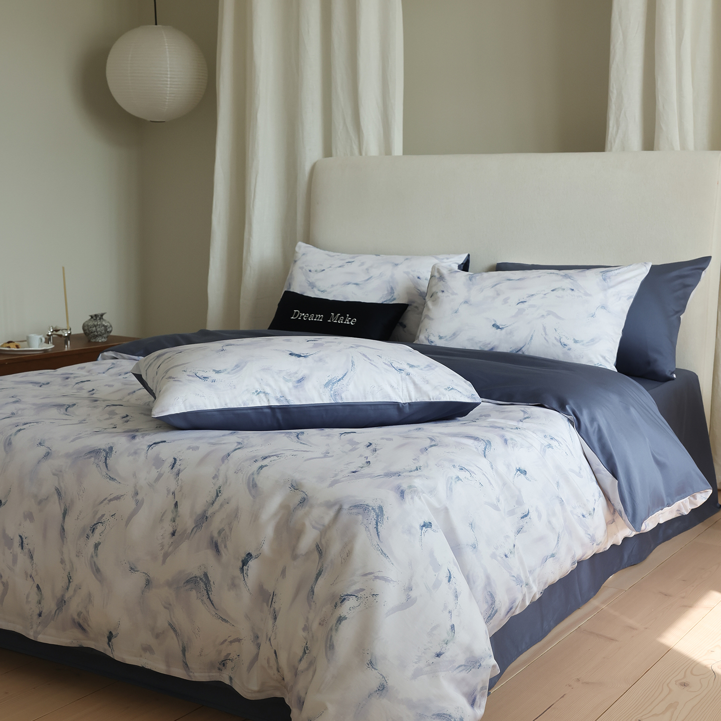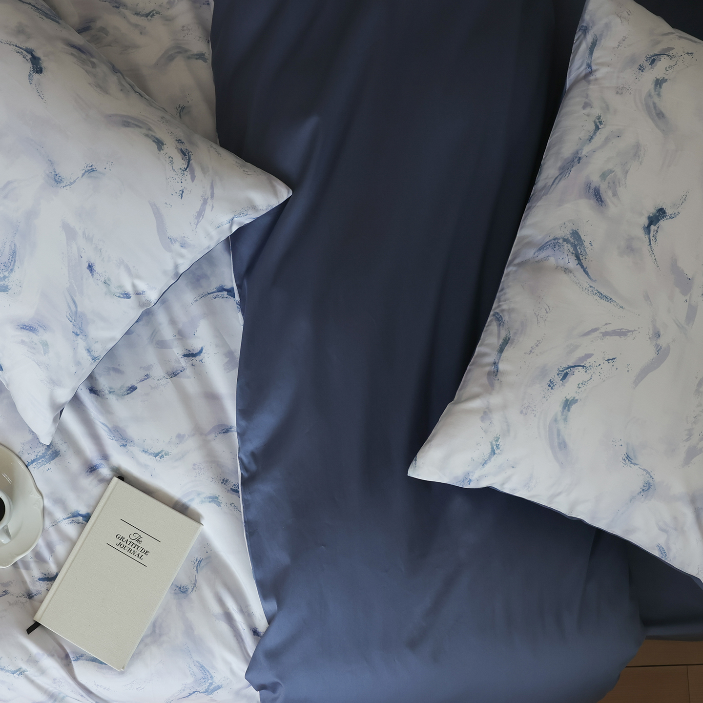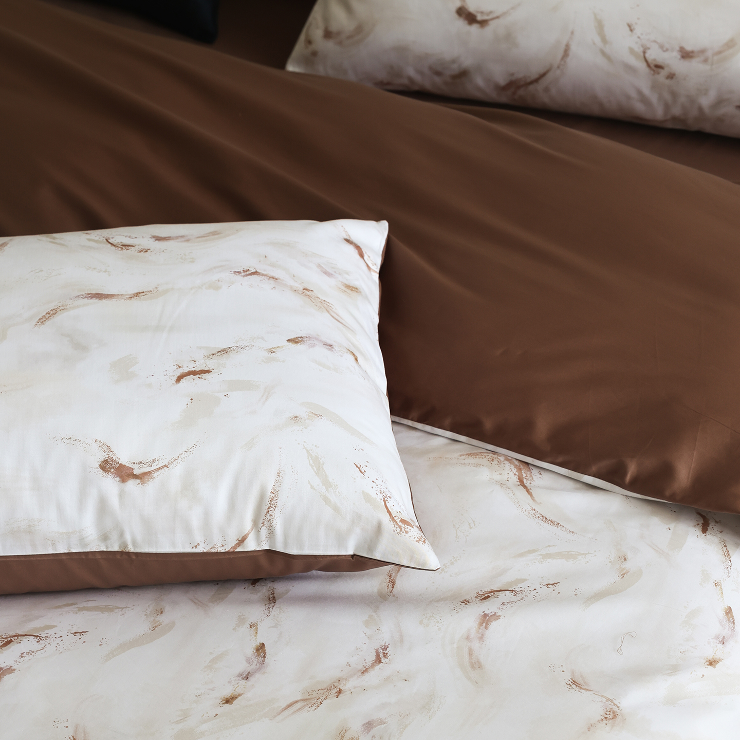 (总)ONE TWO ONE 121 【会员-20】【控价商品】【提供买家秀】【专版花型】2026新款100s长绒棉全棉床上用品数码印花四件套-听潮絮语,听潮絮语-海蓝,听潮絮语-暖咖