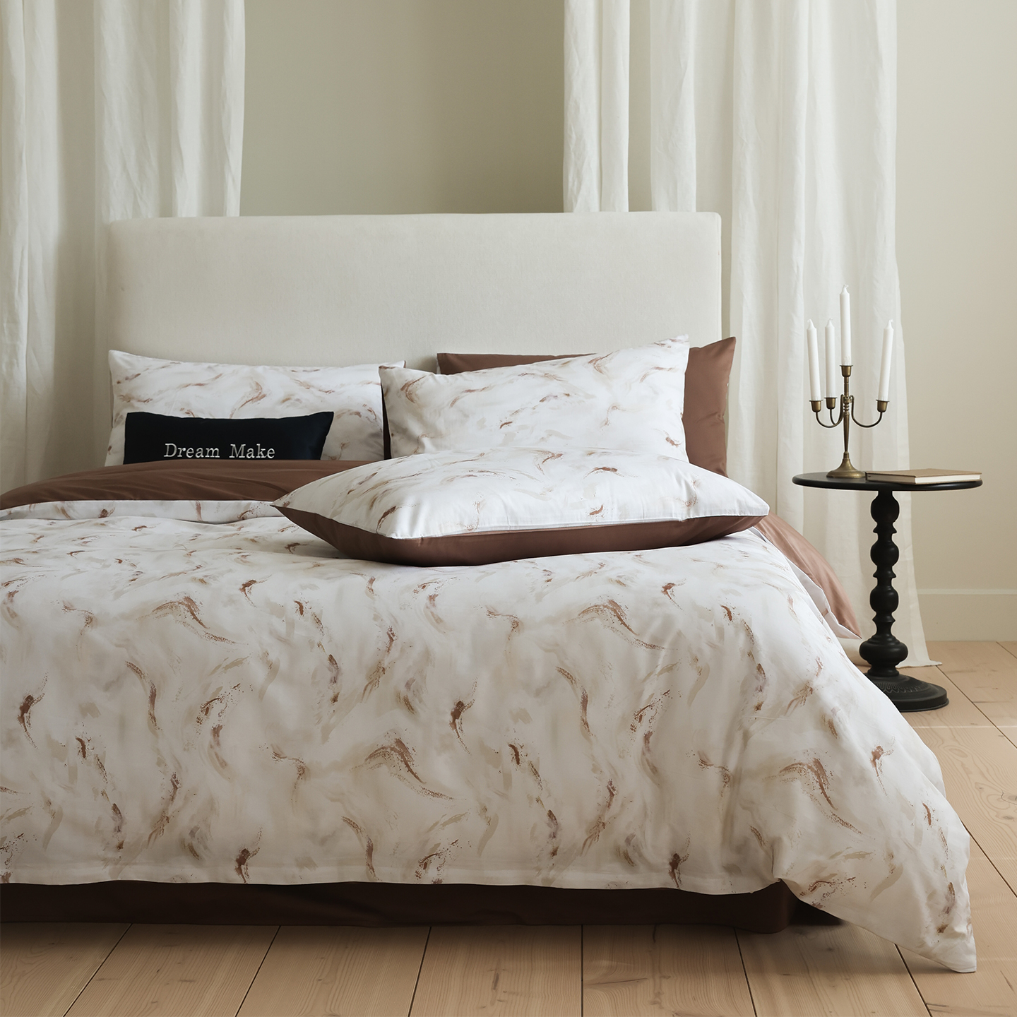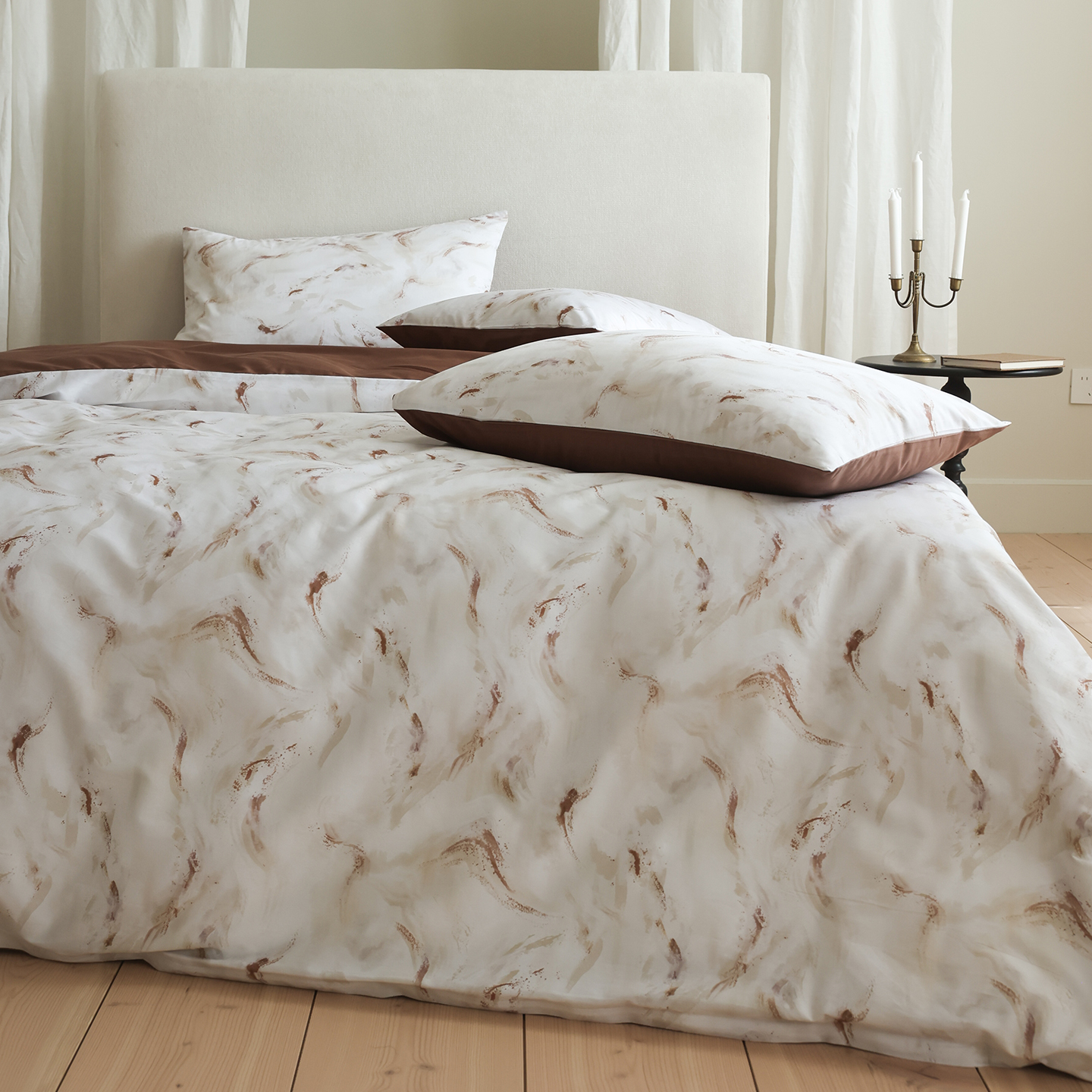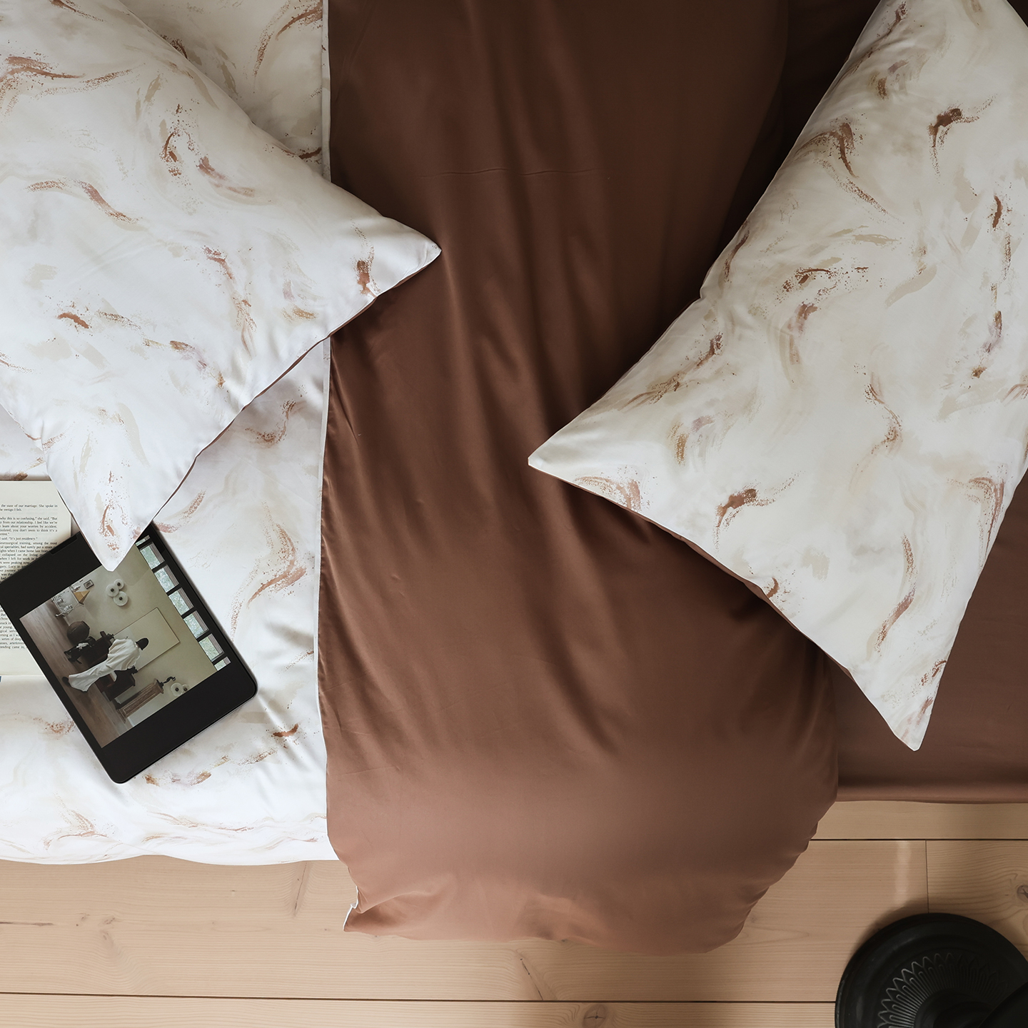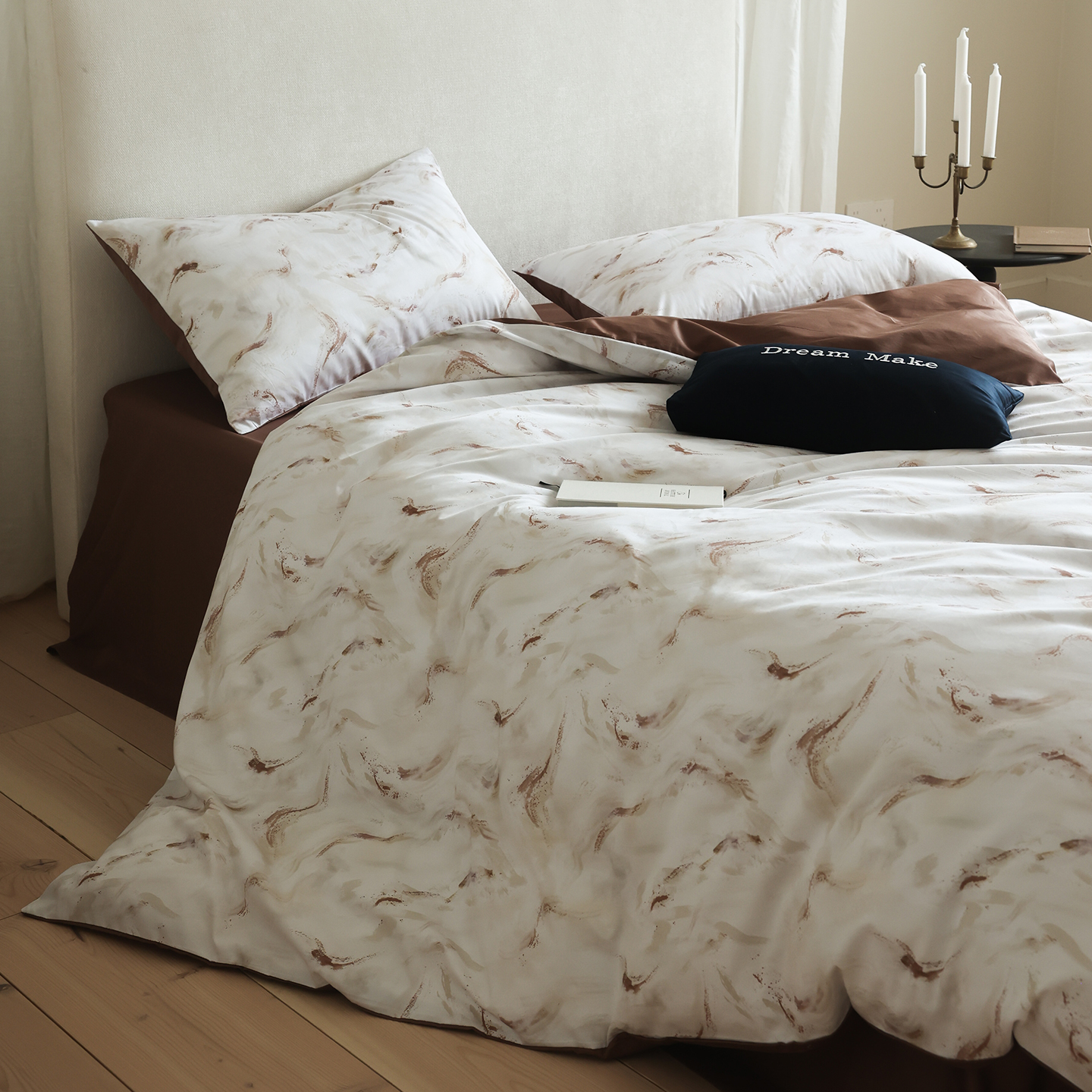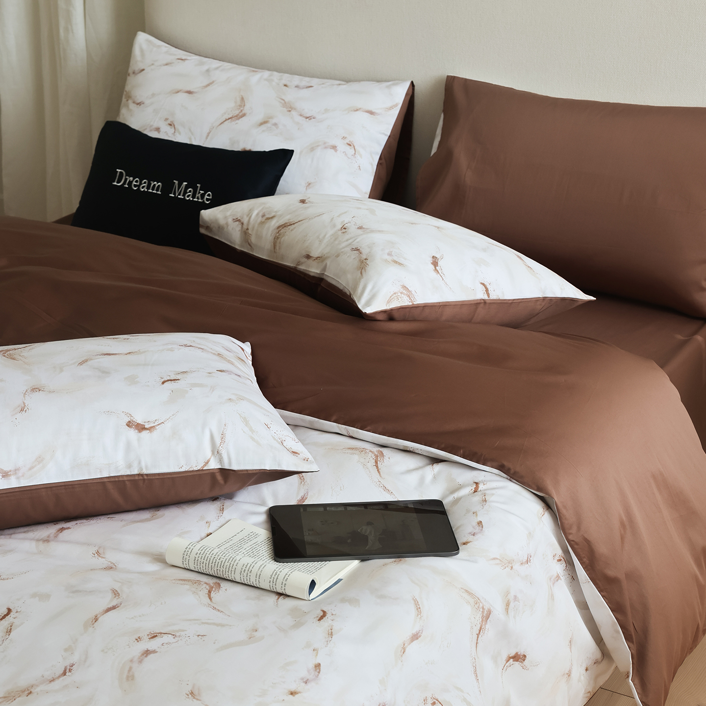 (总)ONE TWO ONE 121 【会员-20】【控价商品】【提供买家秀】【专版花型】2026新款100s长绒棉全棉床上用品数码印花四件套-听潮絮语,听潮絮语-海蓝,听潮絮语-暖咖