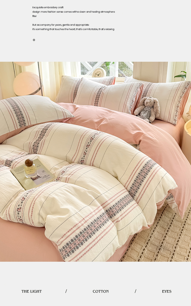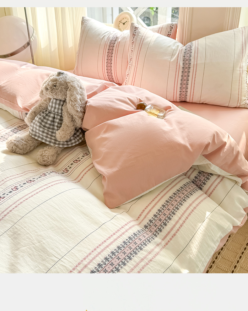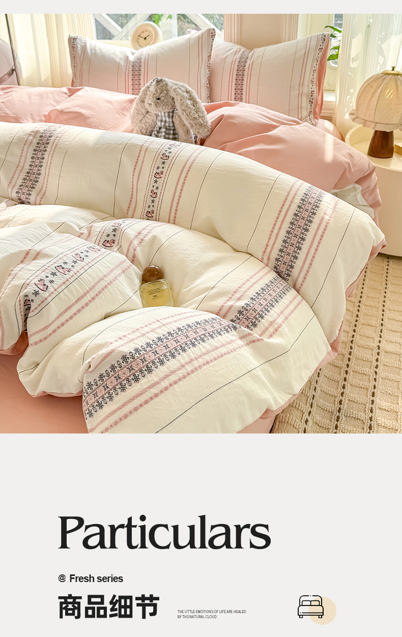 当前位置: 91家纺网 > 商品网购 > 床品套件 > 四件套 > 全棉普通四件套 > 灰鲸 2026新款A类全棉纯棉色织提花四件套 费尔岛小马-粉