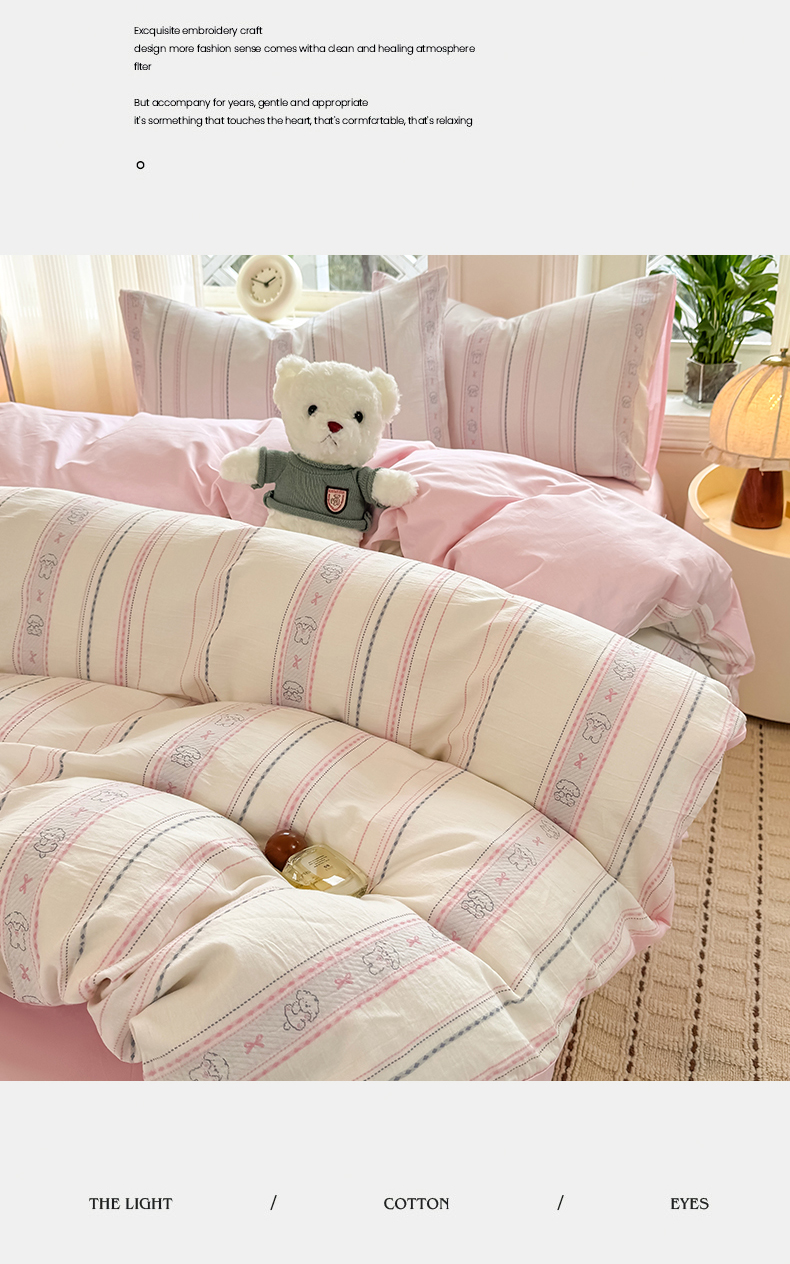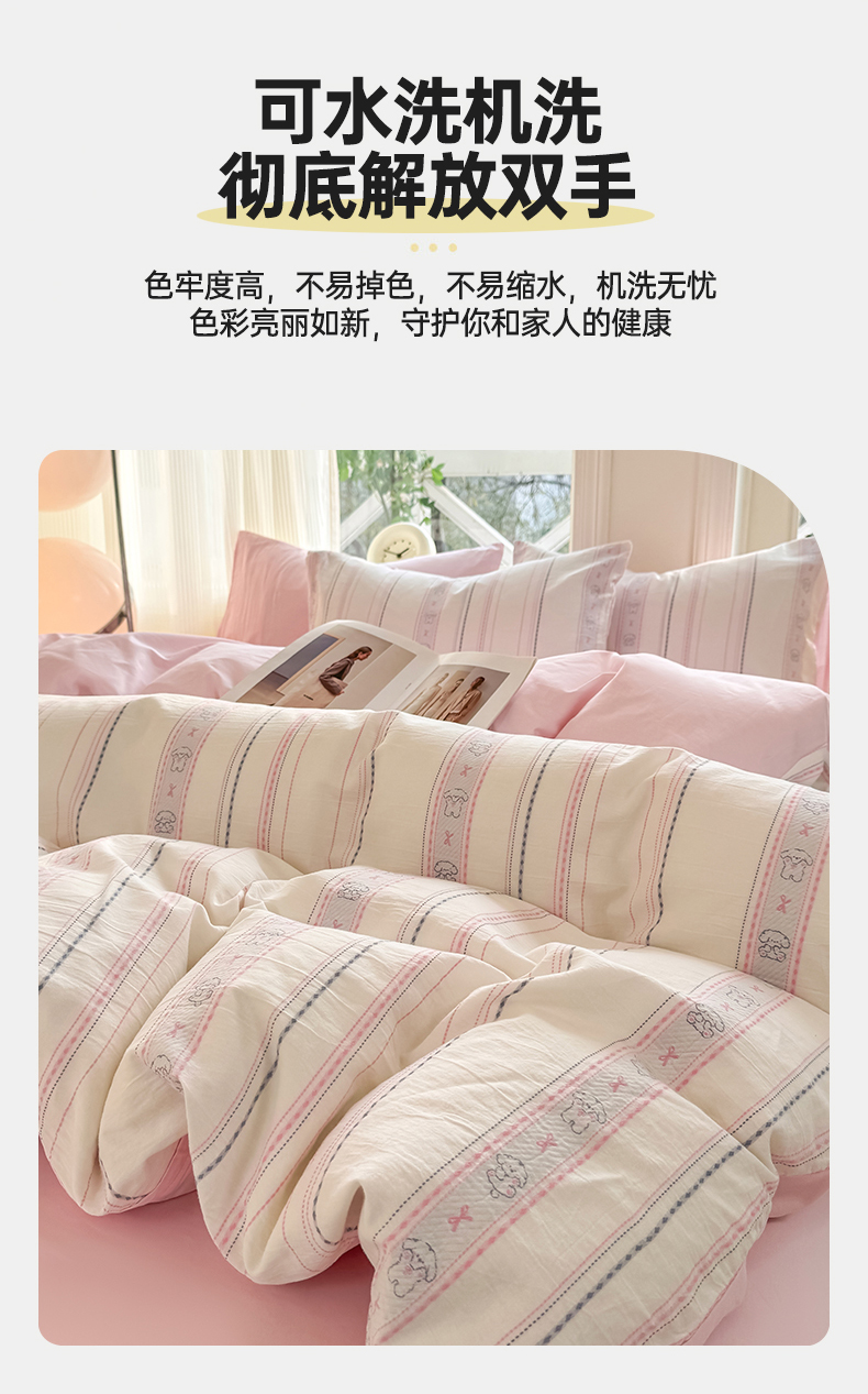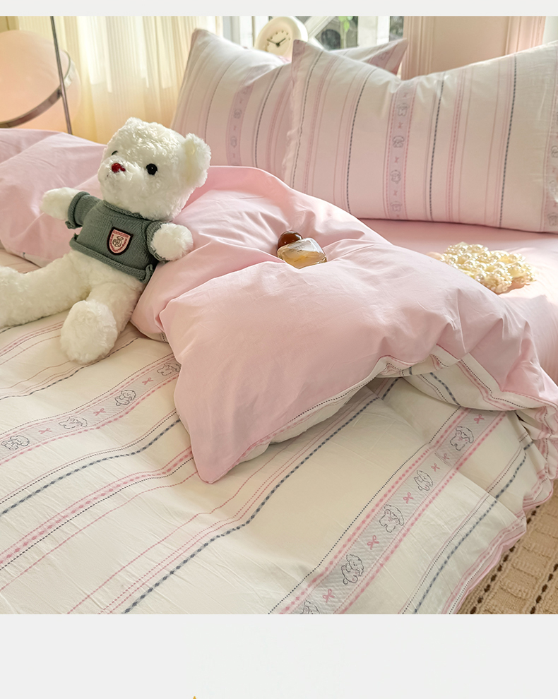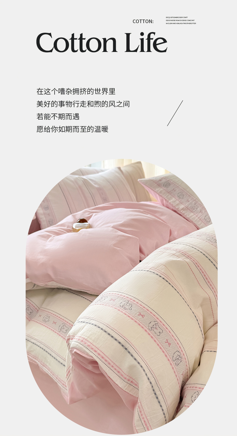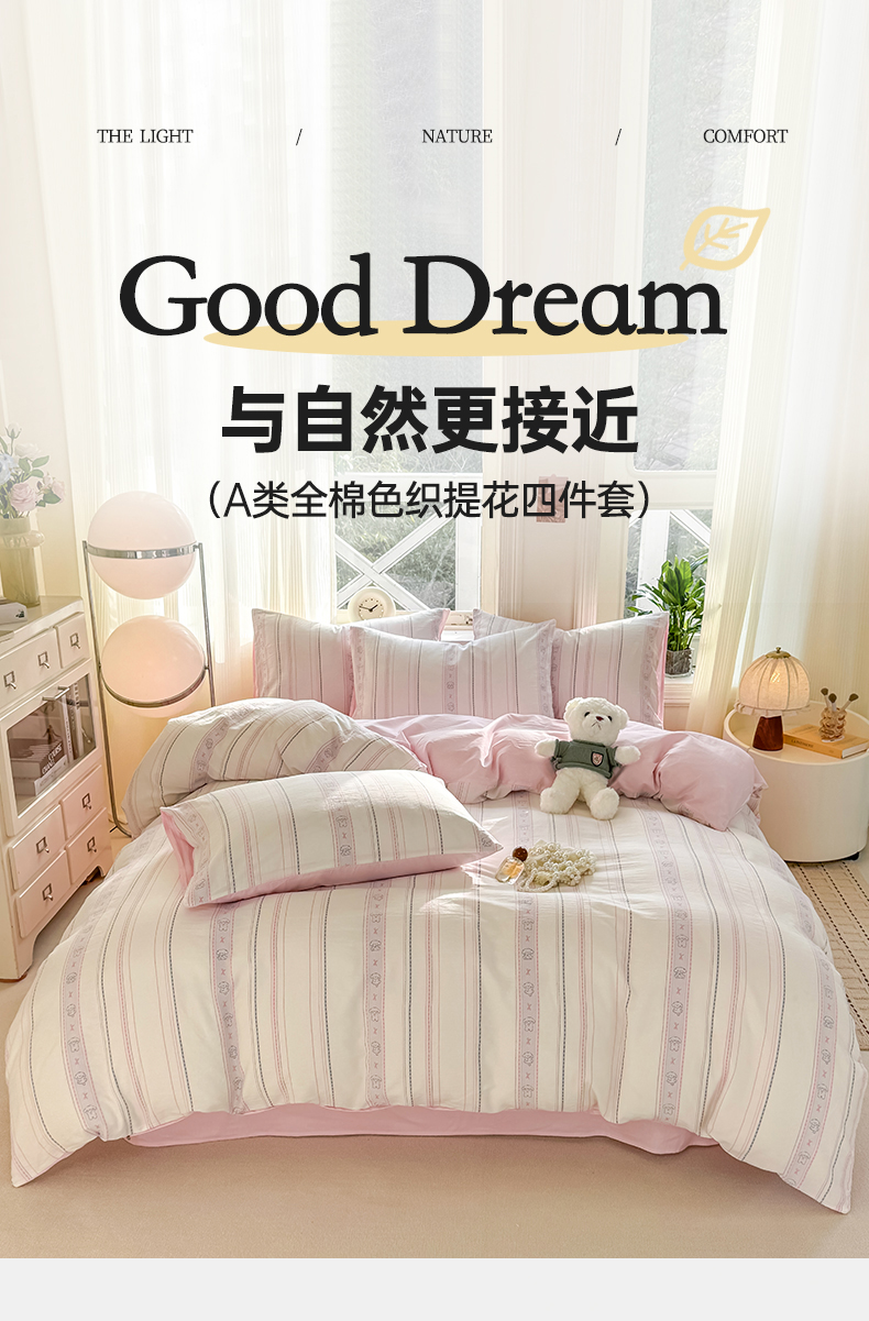 当前位置: 91家纺网 > 商品网购 > 床品套件 > 四件套 > 全棉普通四件套 > 灰鲸 2026新款A类全棉纯棉色织提花四件套 线条小狗-粉