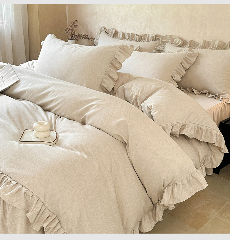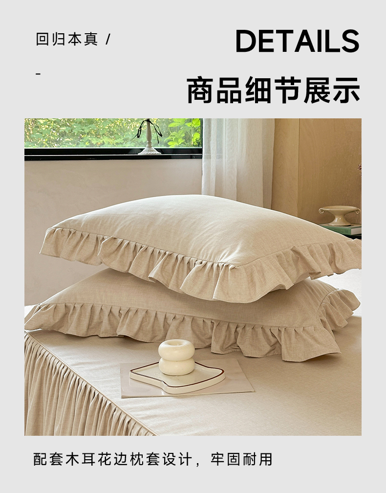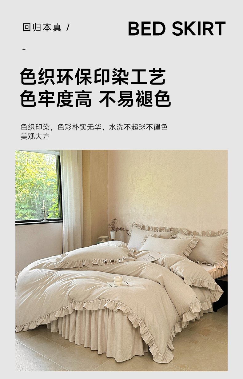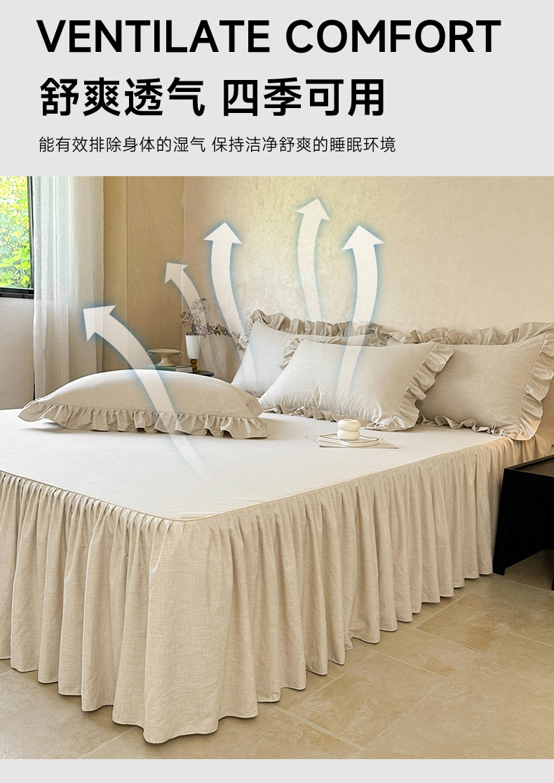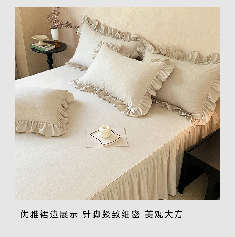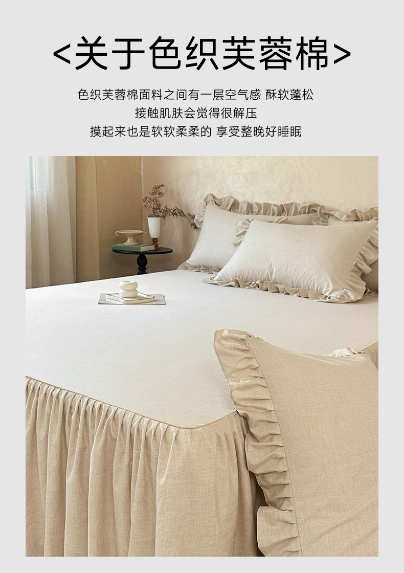 商品名称:忘忧草 2026新款纯色色织芙蓉棉床裙四件套-维密系列 维密-香槟米
