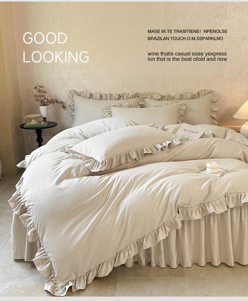 忘忧草 2026新款纯色色织芙蓉棉床裙四件套-维密系列 维密-香槟米
