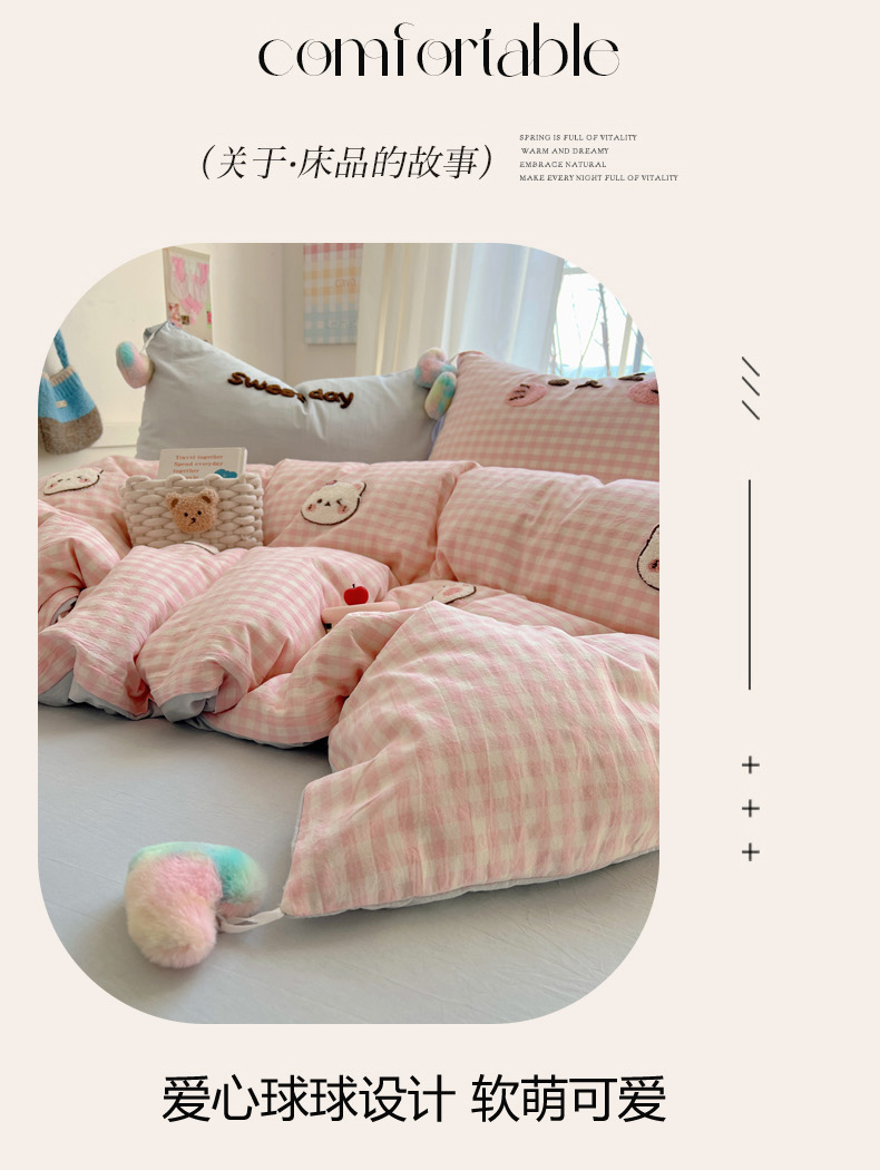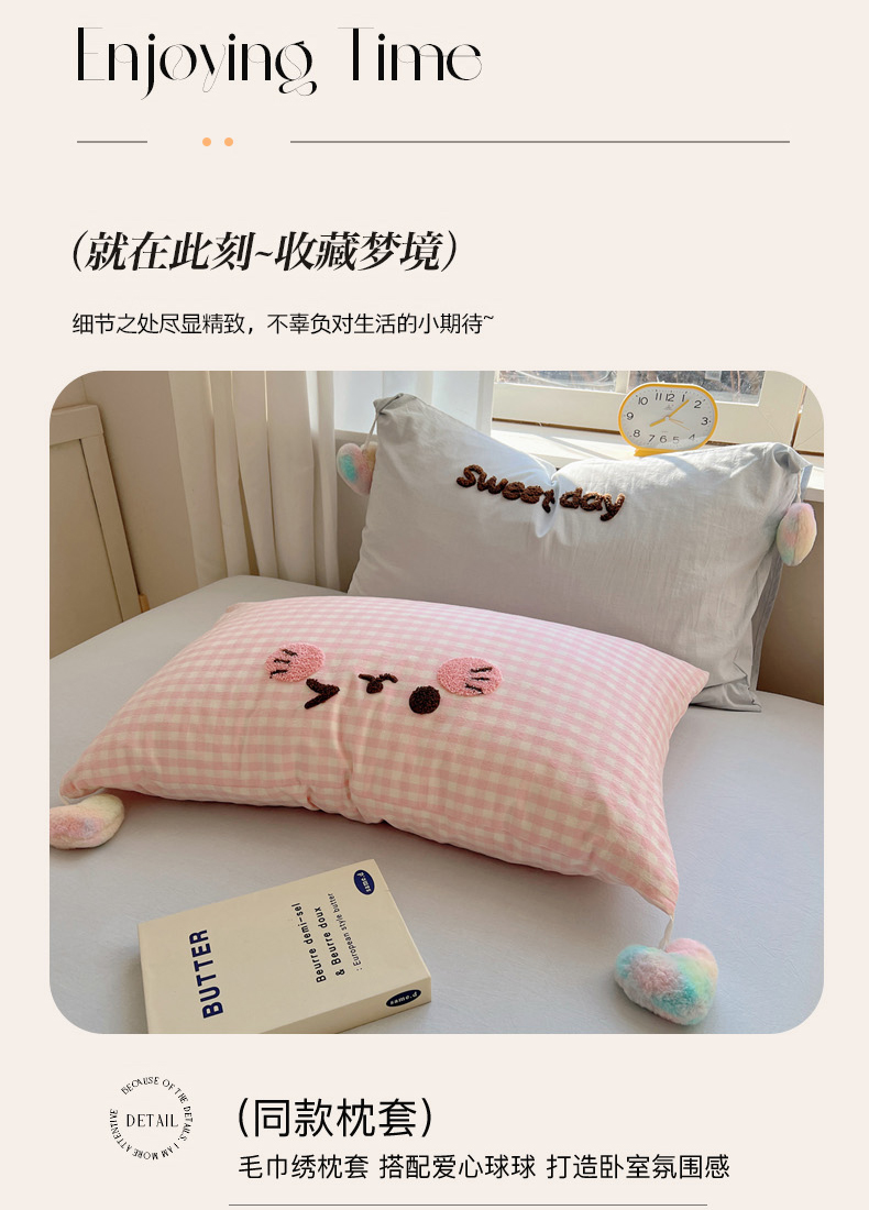 当前位置: 91家纺网 > 商品网购 > 床品套件 > 四件套 > 全棉普通四件套 > 丽涵家纺 2026新款全棉色织水洗棉毛巾绣四件套-甜心小猫 甜心小猫-蓝格-毛球款
