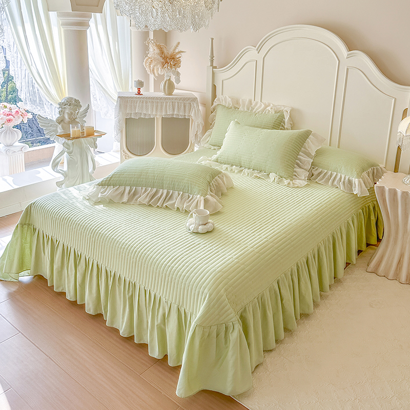(总)网红馆 2025新款蕾丝花边全棉床裙晨暮花间系列,绯红,粉色,麦绿,米色,浅紫,雾蓝