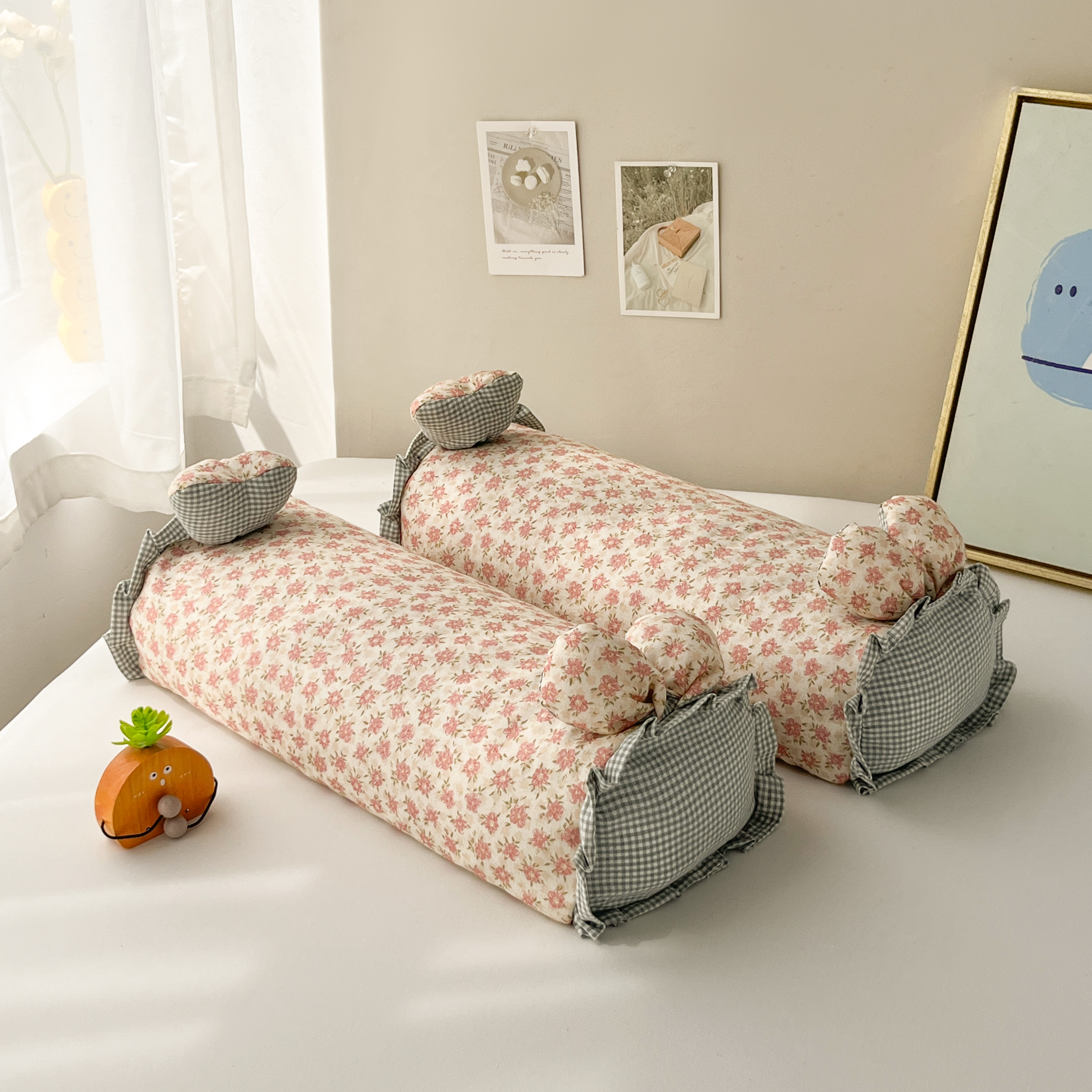 (总)小桃姐家纺 2026新款全棉纯棉贝壳边三角针单枕套双层纱枕套单件儿童枕套,芋泥兔兔,动物派对,可爱星星人,绿意盎然,萌趣木马,组合图(仅供展示不可下单)