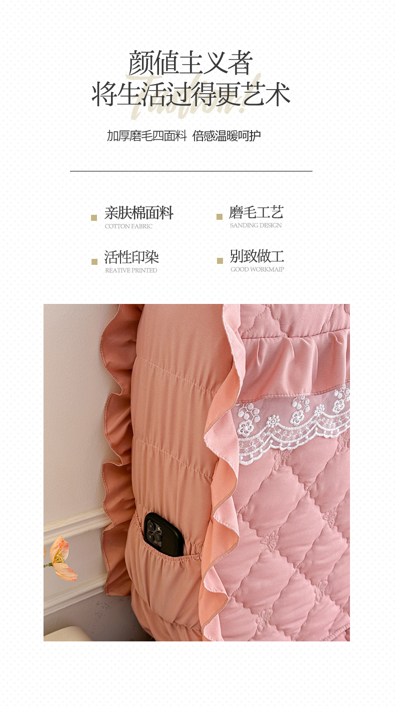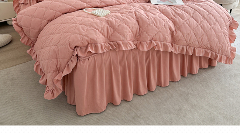 (总)源梦家纺 2024新款幸运草夹棉单床裙,纯白,大红,豆沙,粉色,灰色,兰色,米黄,玉色