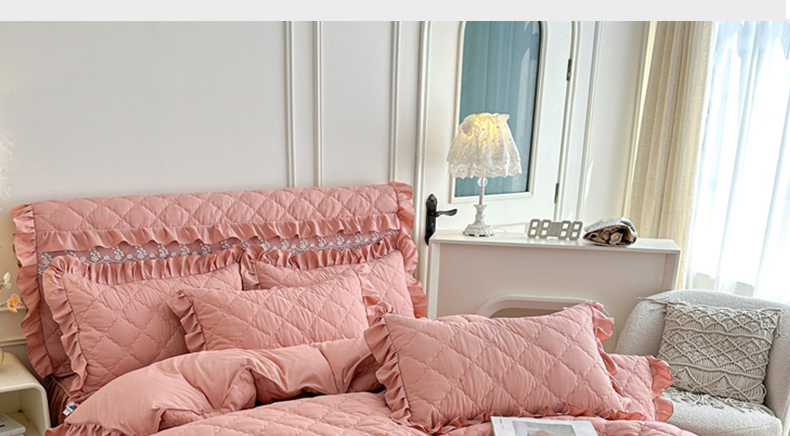 (总)源梦家纺 2024新款幸运草夹棉床裙四件套,纯白,大红,粉色,灰色,兰色,米黄,玉色,豆沙