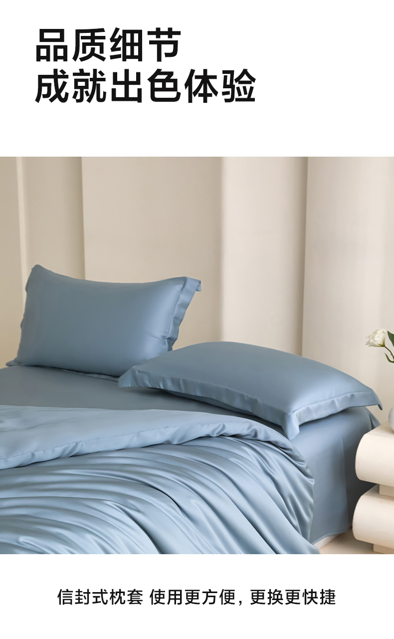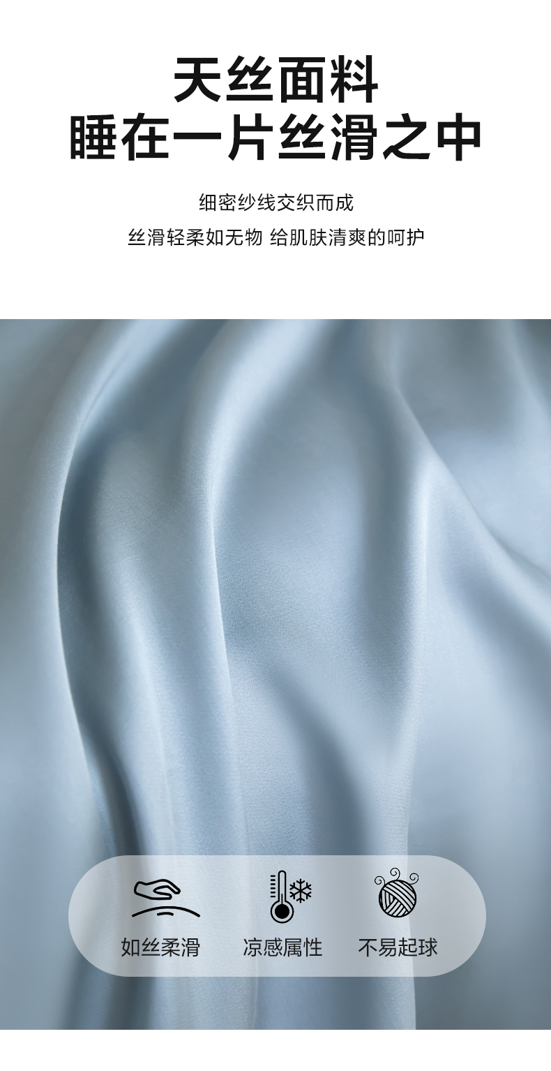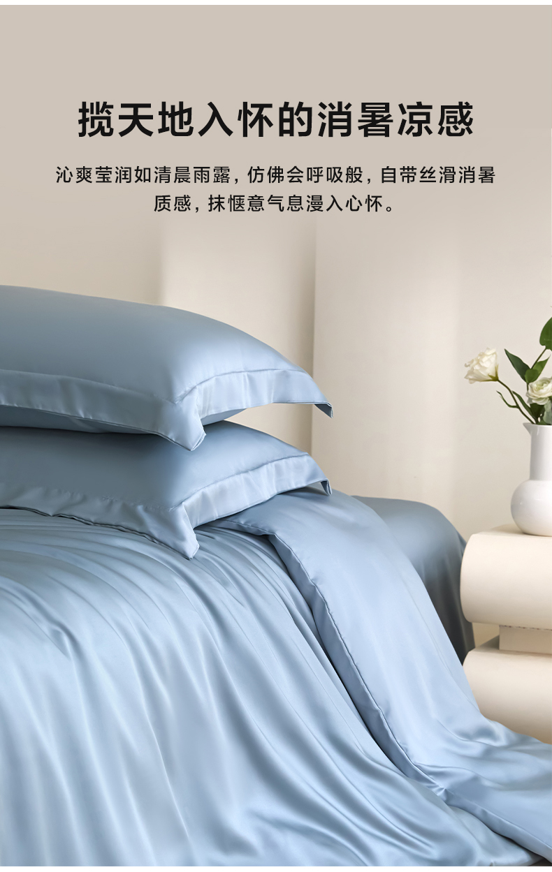 商品名称:禧澜庭 2026新款纯色夏季凉感天丝四件套莱赛尔纤维冰丝四件套 静雅蓝