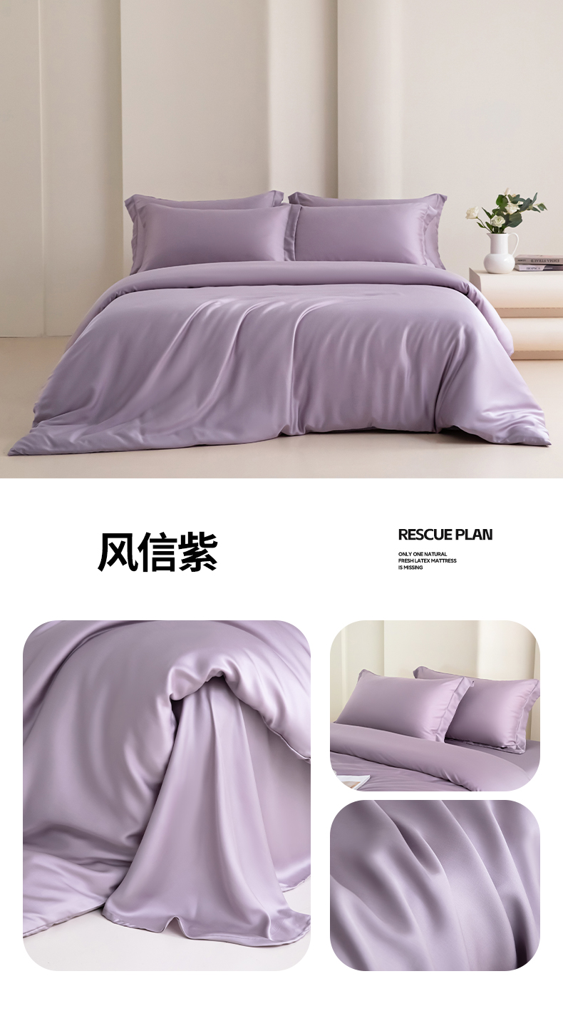 (总)禧澜庭 2026新款纯色夏季凉感天丝四件套莱赛尔纤维冰丝四件套,组合图,风信紫,静雅蓝,莲粉香槟,莲花粉,若草乳白,夏云灰,香香槟,雅蓝云灰,玉乳香槟,云朵蓝,云灰莲粉,云蓝若草