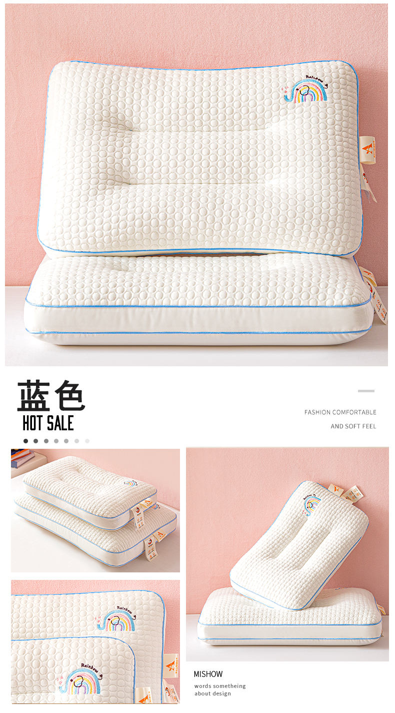 商品名称:芯宜佳 2026新款枕芯A类针织按摩卡通刺绣儿童枕头学生宿舍专用护颈枕芯 彩虹小象