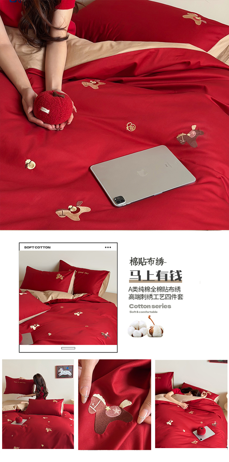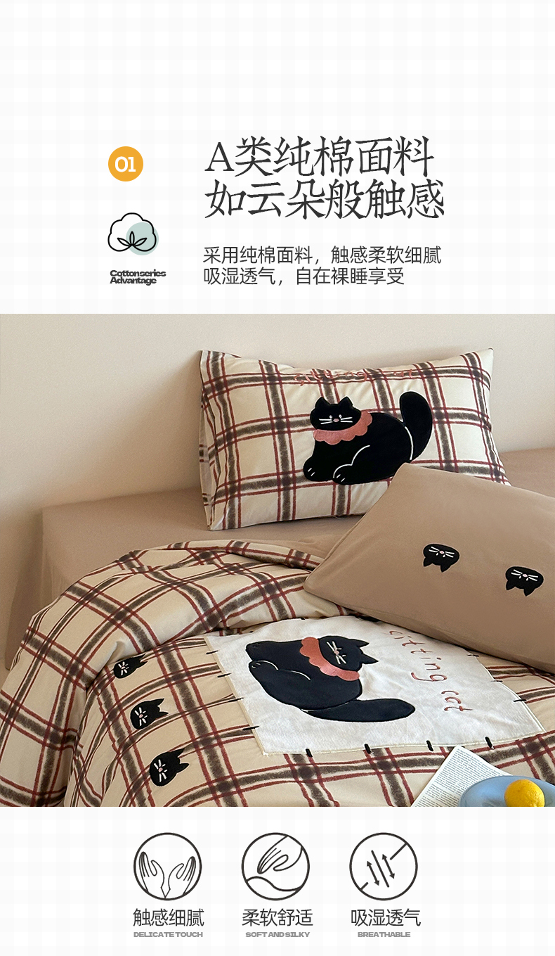 当前位置: 91家纺网 > 商品网购 > 床品套件 > 四件套 > 全棉普通四件套 > 桃子家居 2026新款A类纯棉全棉元气小马贴布绣高端刺绣工艺四件套系列 棉贴布绣-焦糖小黑猫
